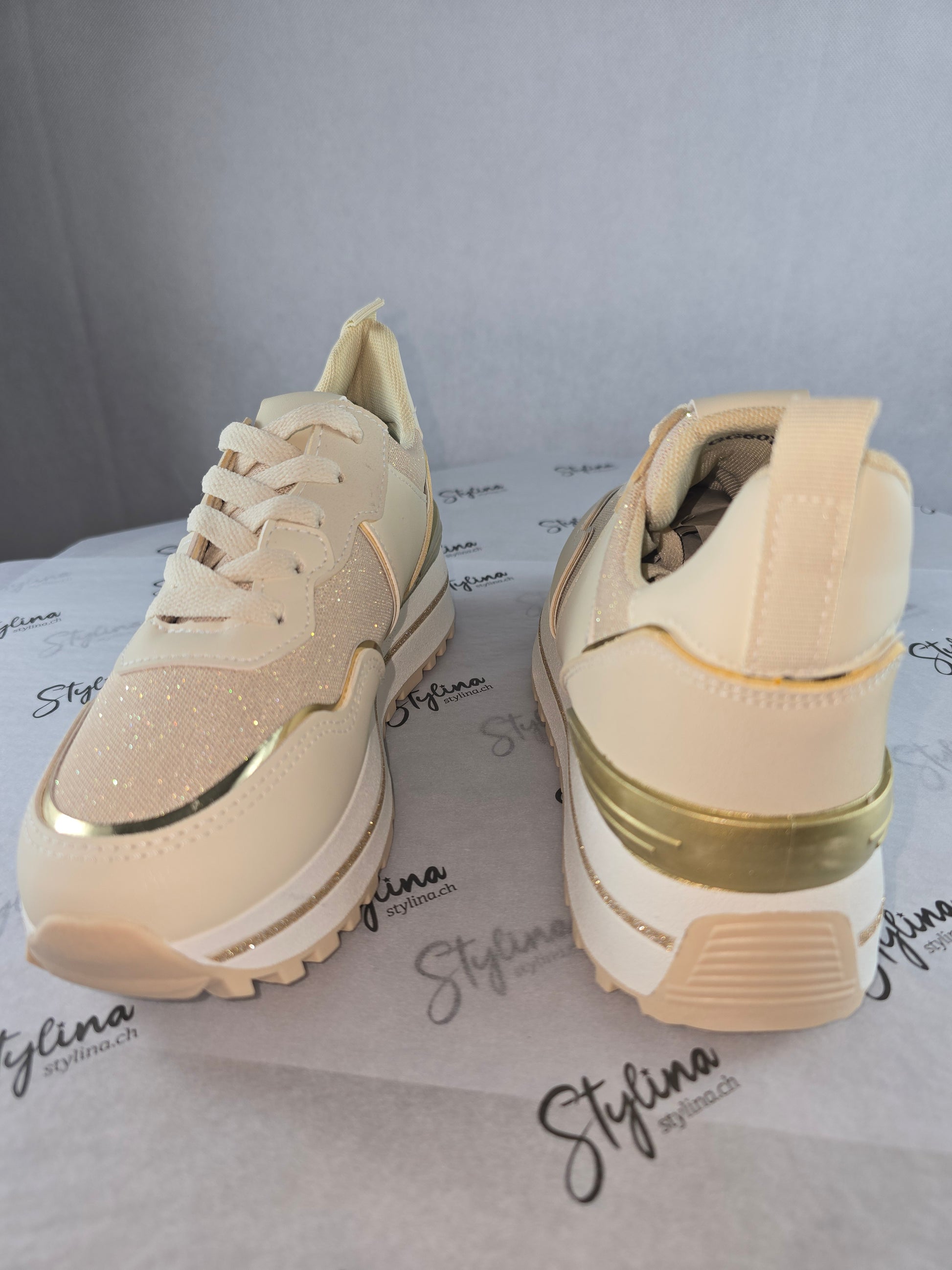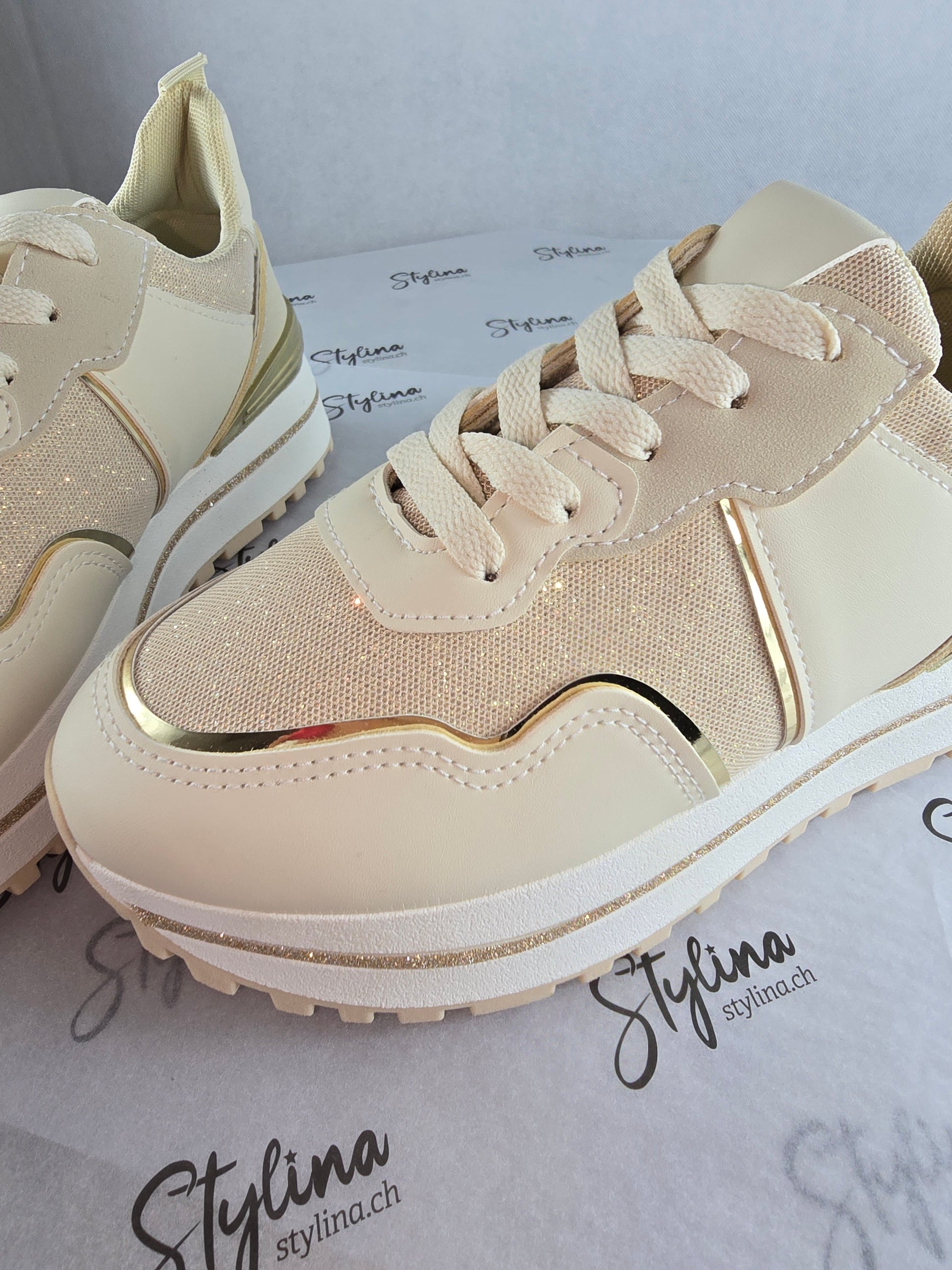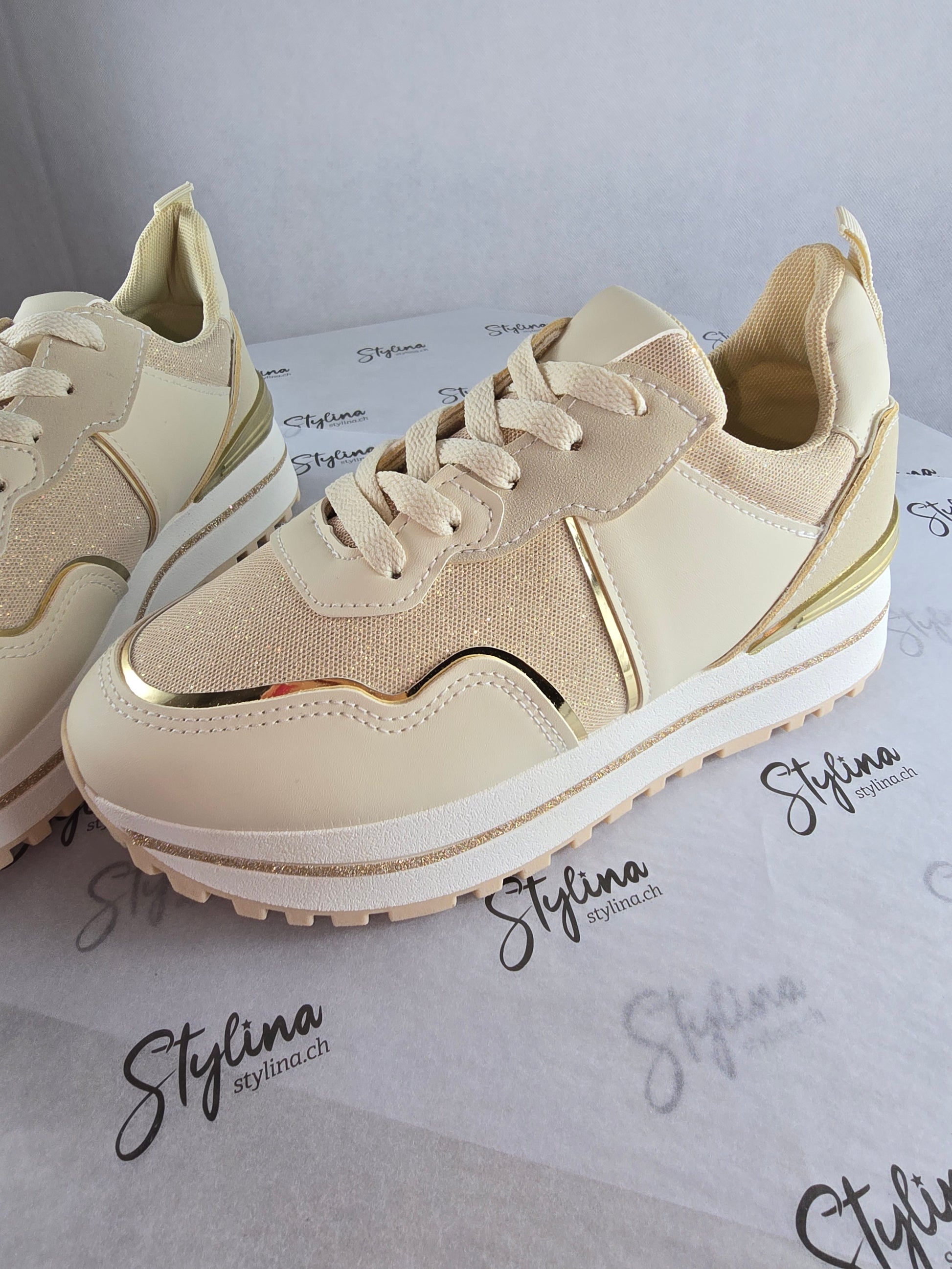 Baskets beiges à détails dorés – Chic & confort