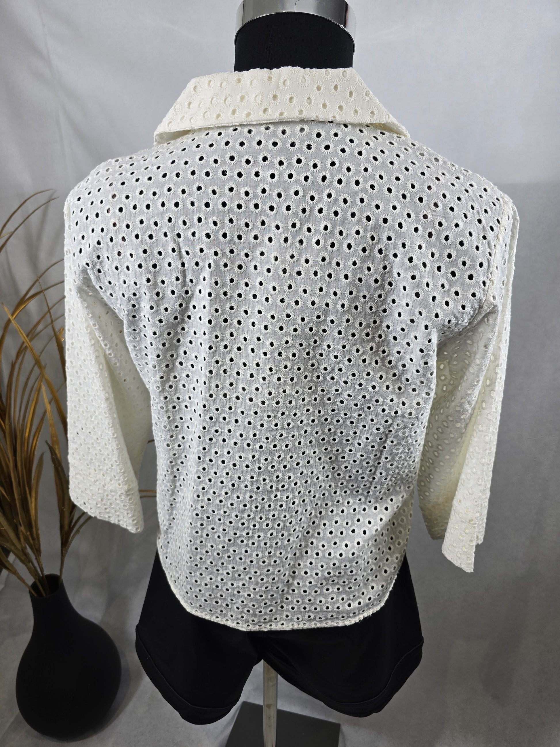 Cette blouse avec col et détails à trous allie élégance et fraîcheur. Confectionnée en 100% coton, elle offre une douceur et un confort exceptionnels pour toute la journée. Les détails à trous ajoutent une touche de modernité et de légèreté, parfaite pour les journées ensoleillées ou pour un look décontracté chic. Fabriquée en Turquie, cette blouse combine qualité et style intemporel, idéale pour compléter vos tenues estivales ou plus habillées. Un incontournable de votre garde-robe pour un style à la fois simple et raffiné.
