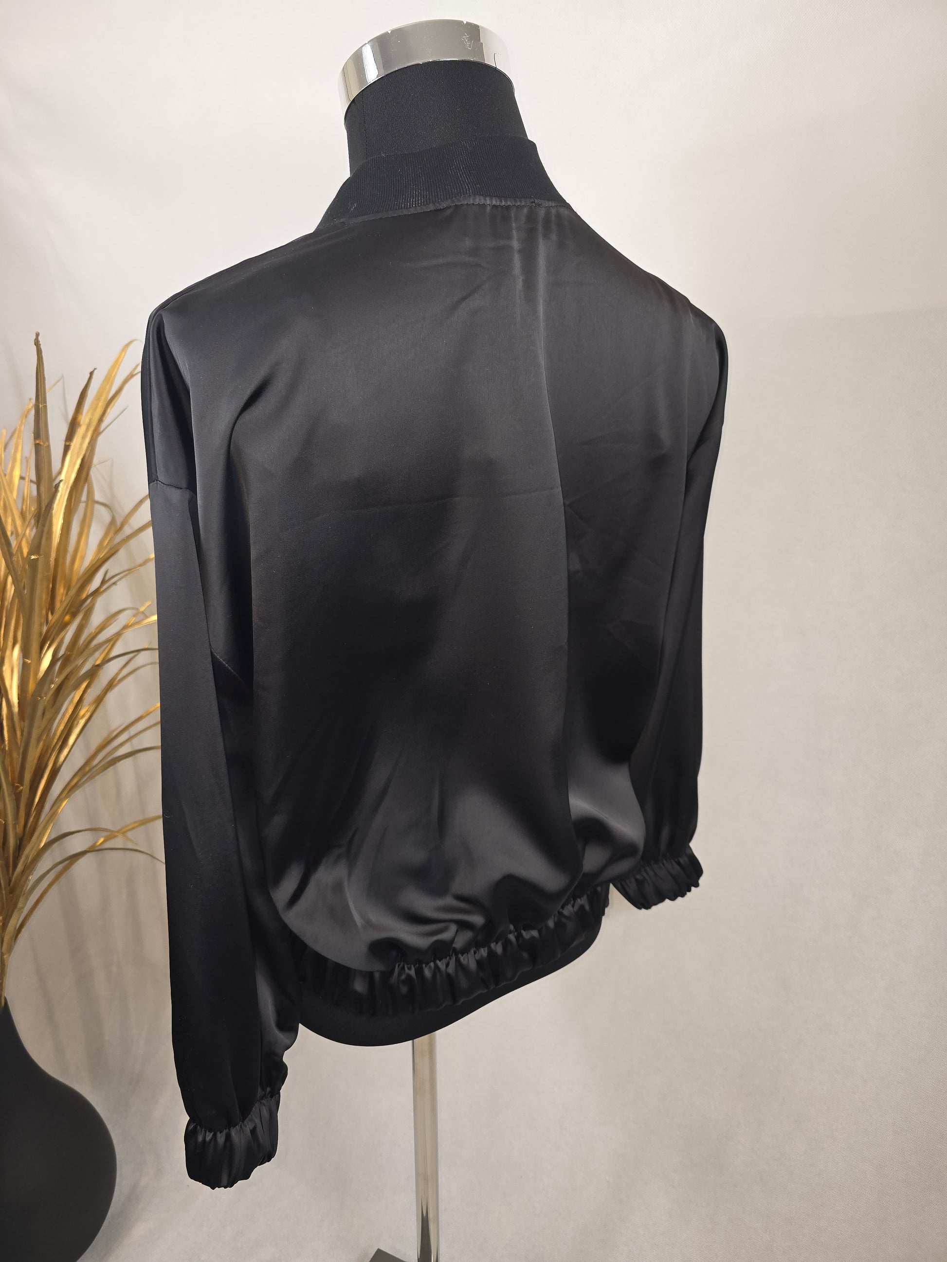 Adoptez un look audacieux et moderne avec le bombers Mirka noir, une pièce élégante et pratique. Confectionné en Italie avec 70% de polyester et 30% de viscose, ce bombers combine confort et légèreté. Sa fermeture éclair, son col mao, et ses manches ainsi que son tour de taille élastiques vous assurent une coupe ajustée et stylée. Parfait pour compléter vos tenues casual ou plus habillées, il vous offrira une allure tendance et sophistiquée, tout en restant confortable et pratique.