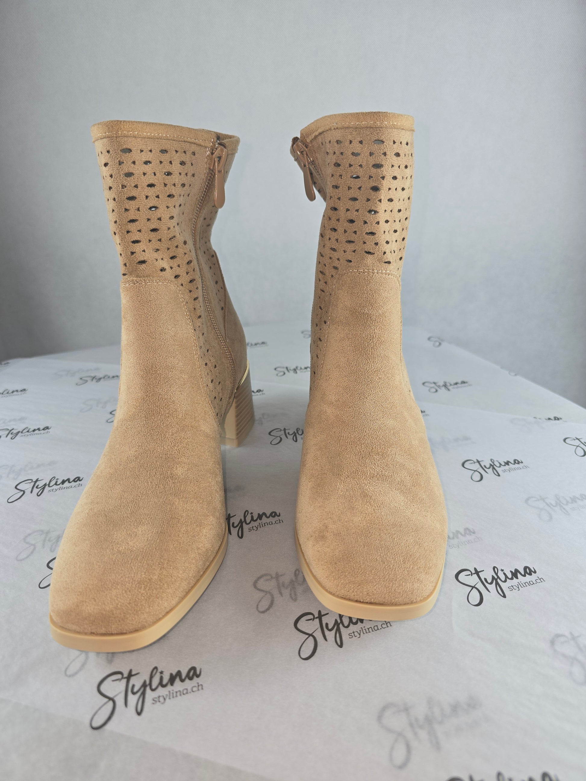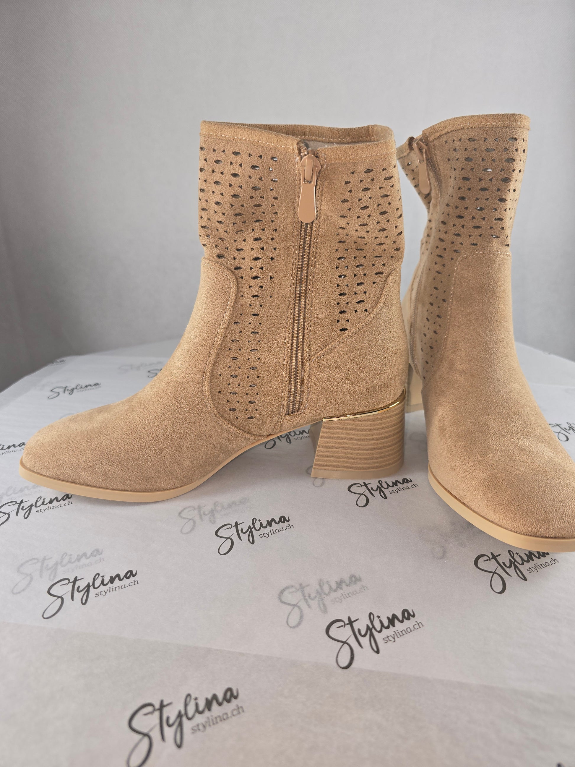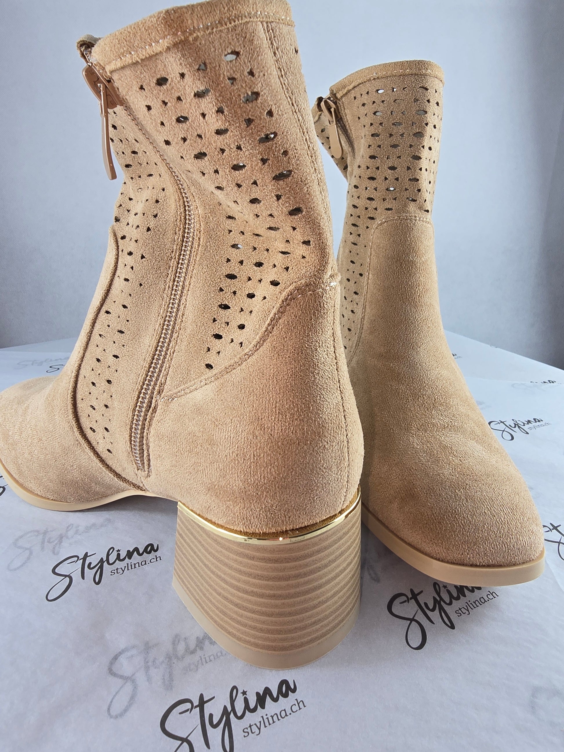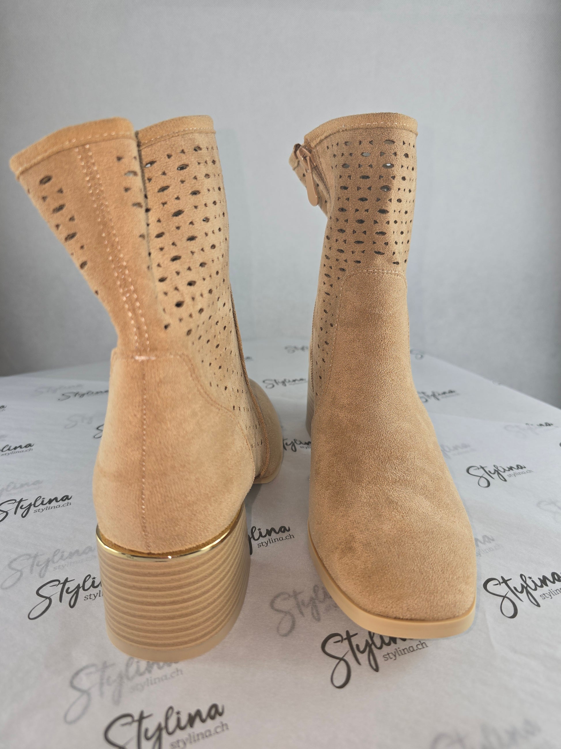 Bottines ajourées à talon – Beige clair