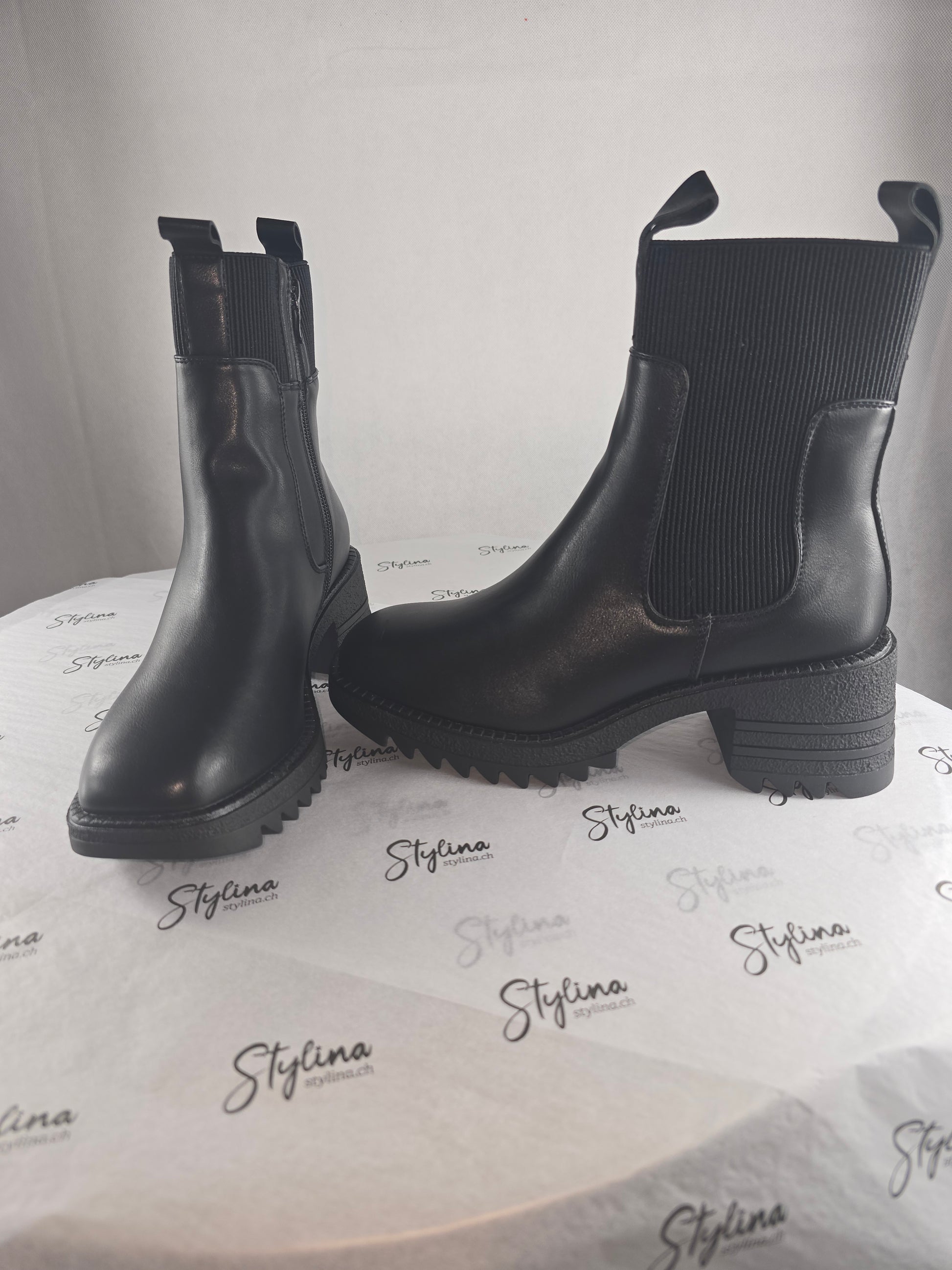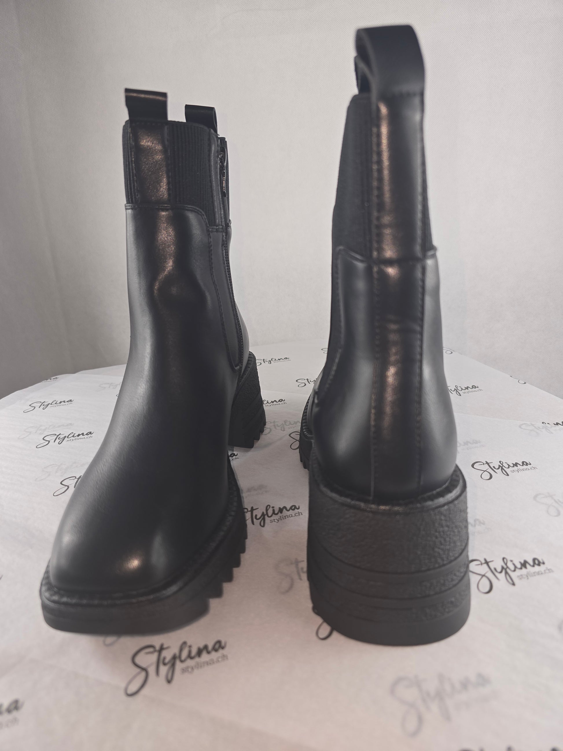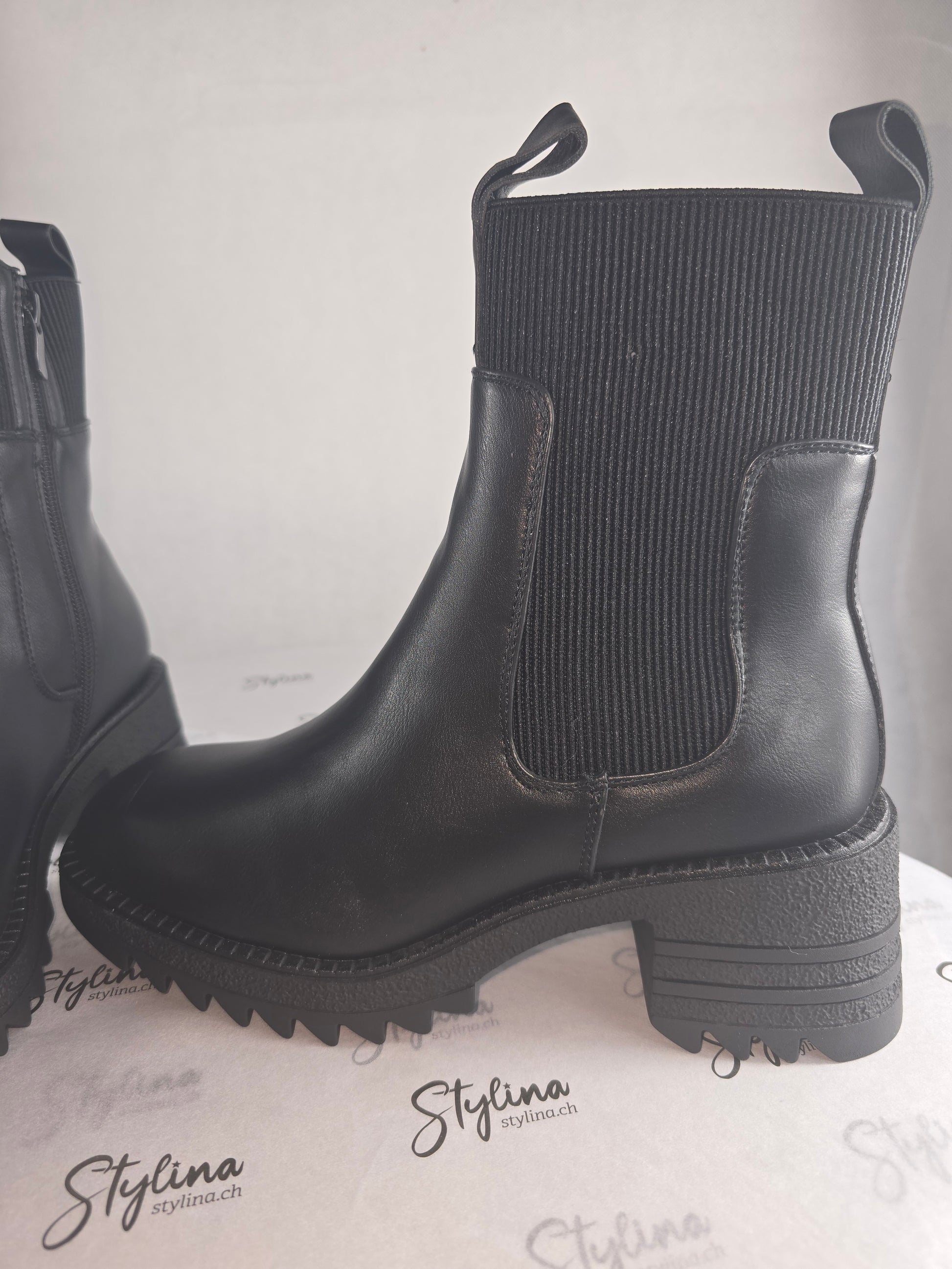 Bottines noires à semelle crantée – Cuir synthétique