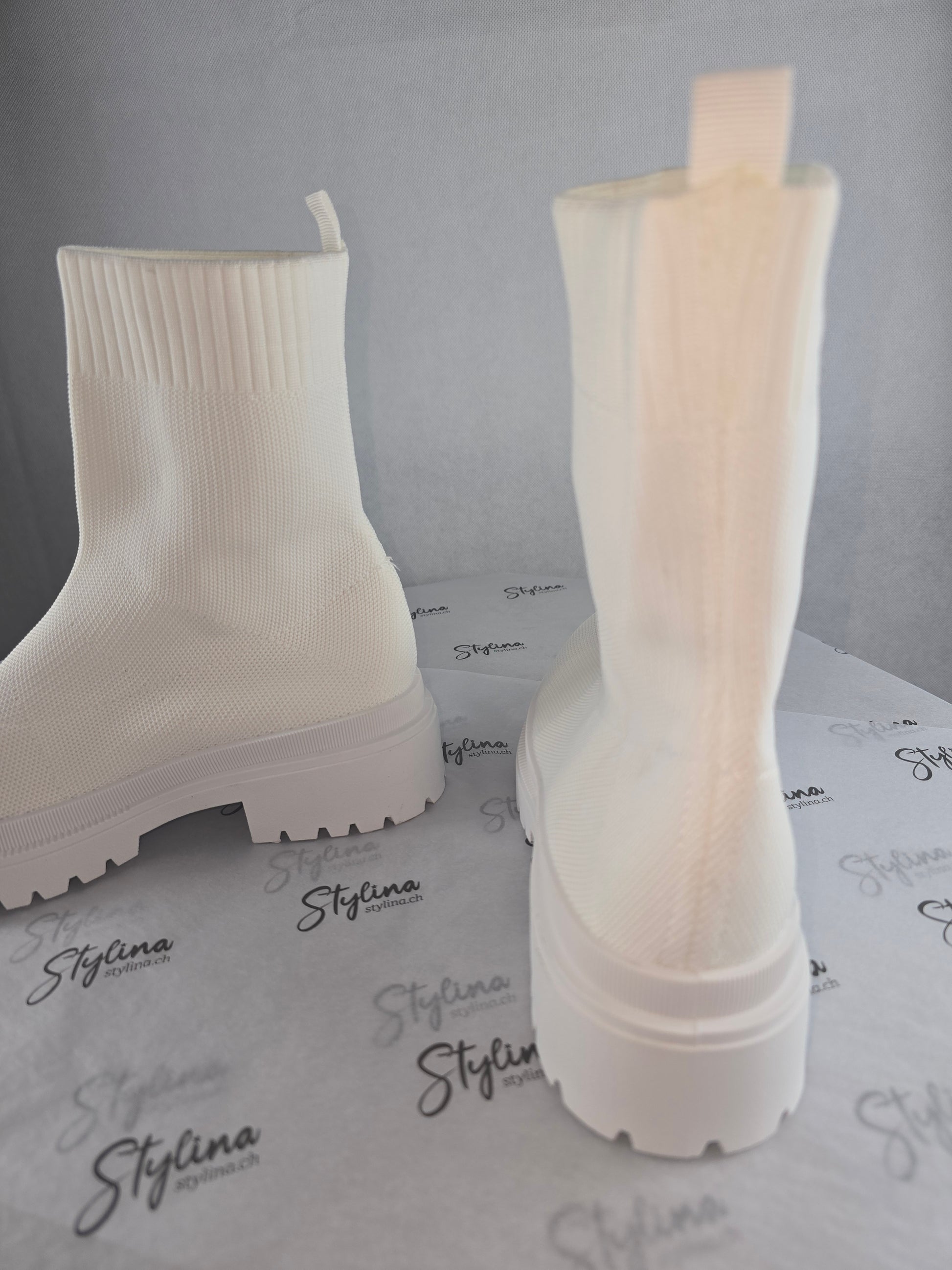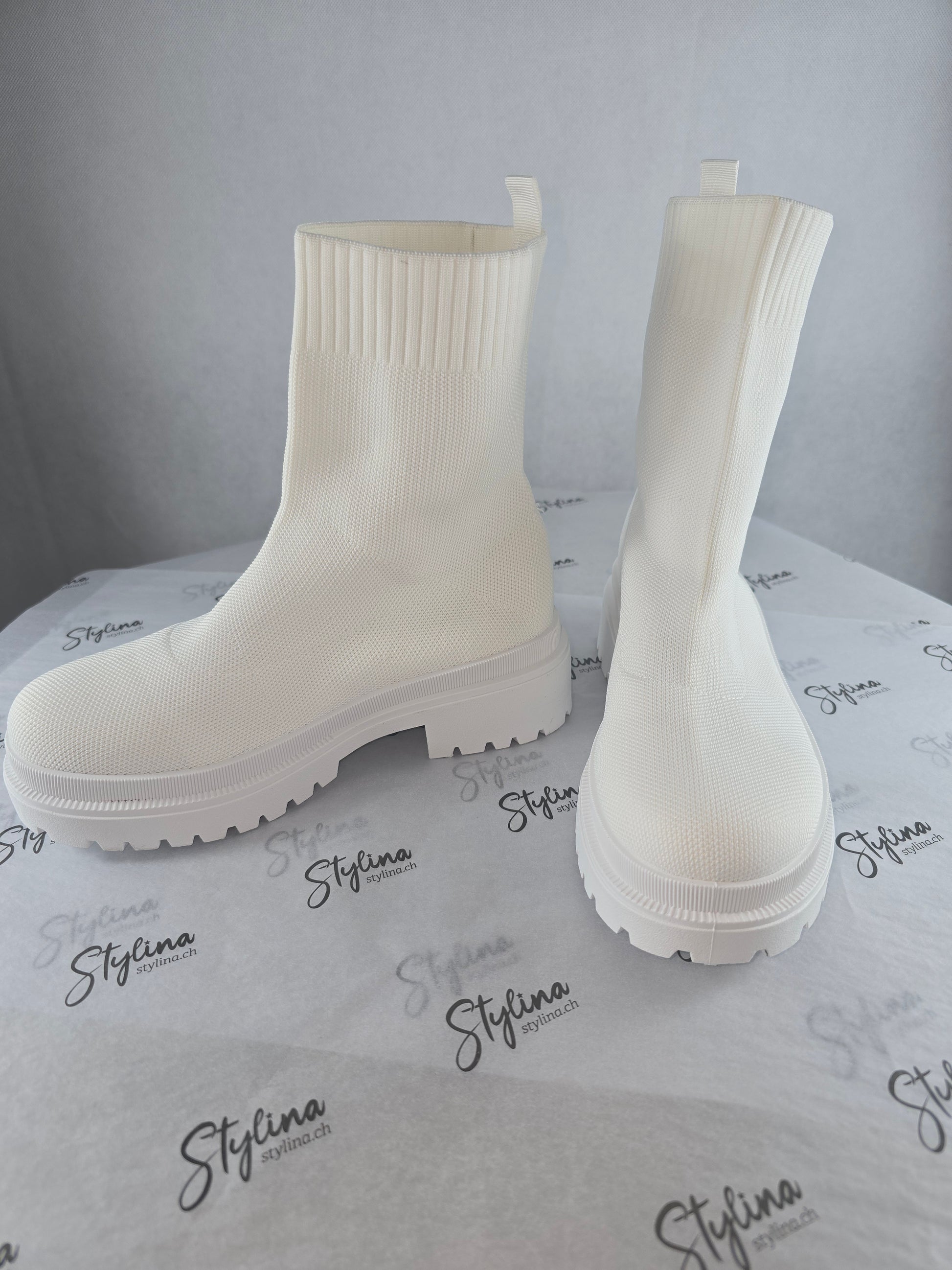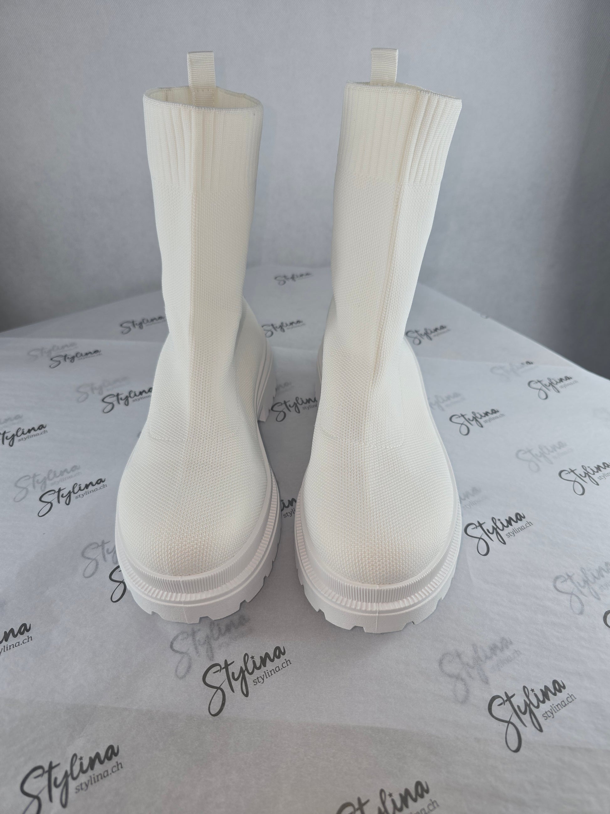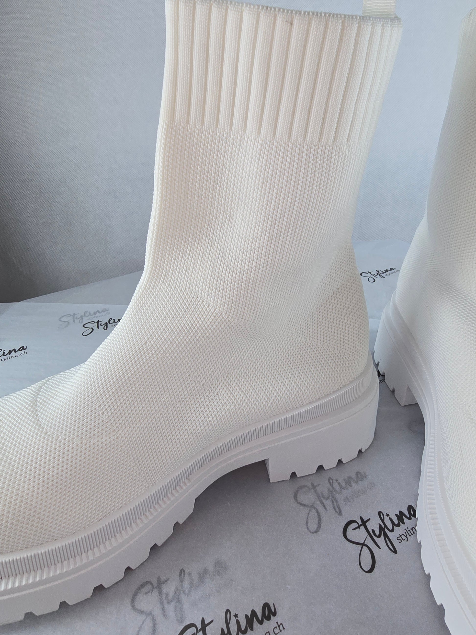 Bottines chaussettes blanches – effet maille