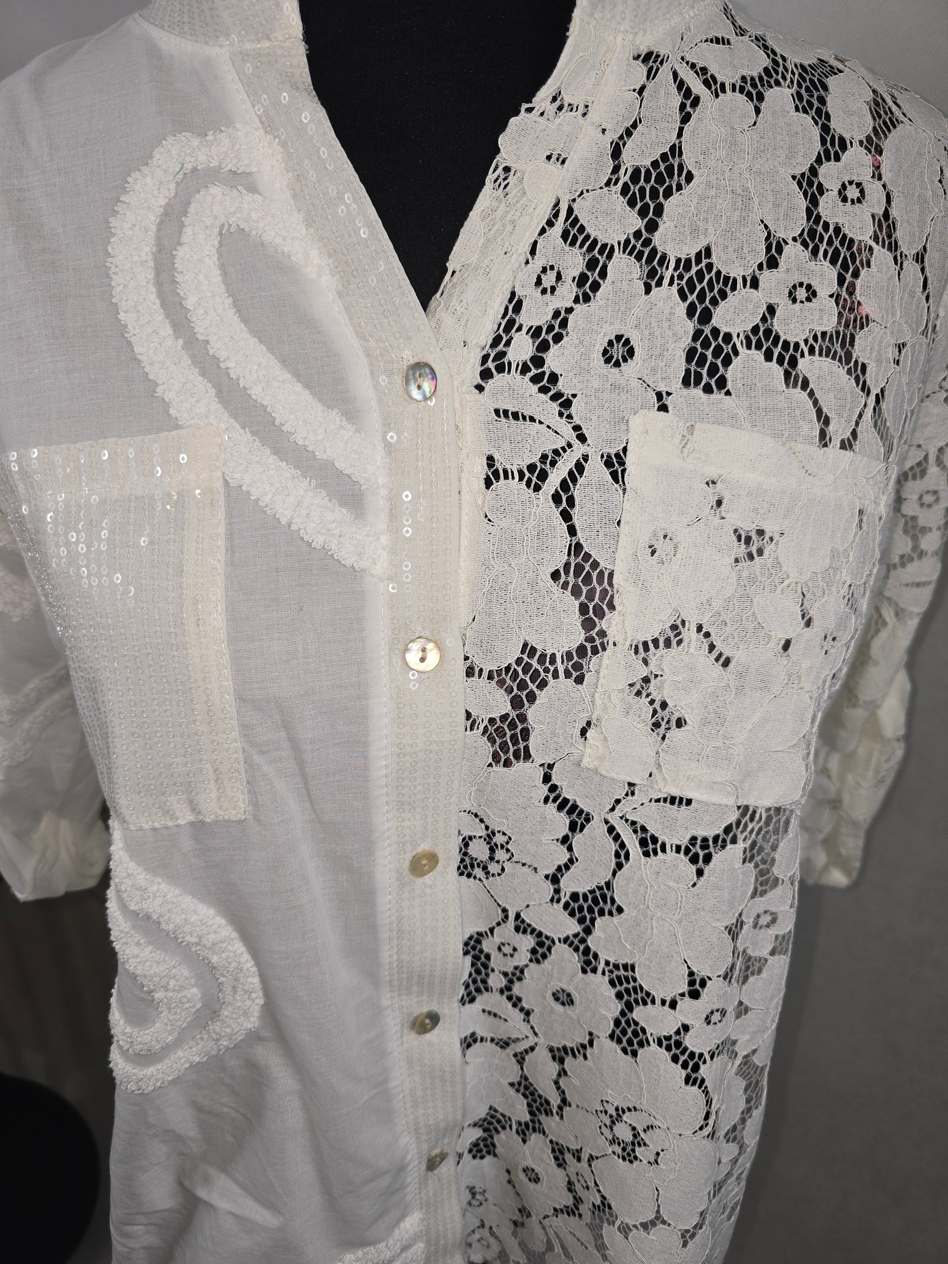 Craquez pour la chemise Aya Blanc, une pièce unique qui allie élégance et originalité. Confectionnée en 100% coton, cette chemise se distingue par son délicat dos en dentelle, apportant une touche de féminité incomparable. Son design raffiné comprend également une poche ornée d’un motif cœur, idéale pour sublimer vos looks du quotidien ou vos tenues plus habillées. Sa coupe intemporelle et sa teinte blanche en font une pièce polyvalente. Fabriquée en Italie, elle incarne un savoir-faire d’exception.