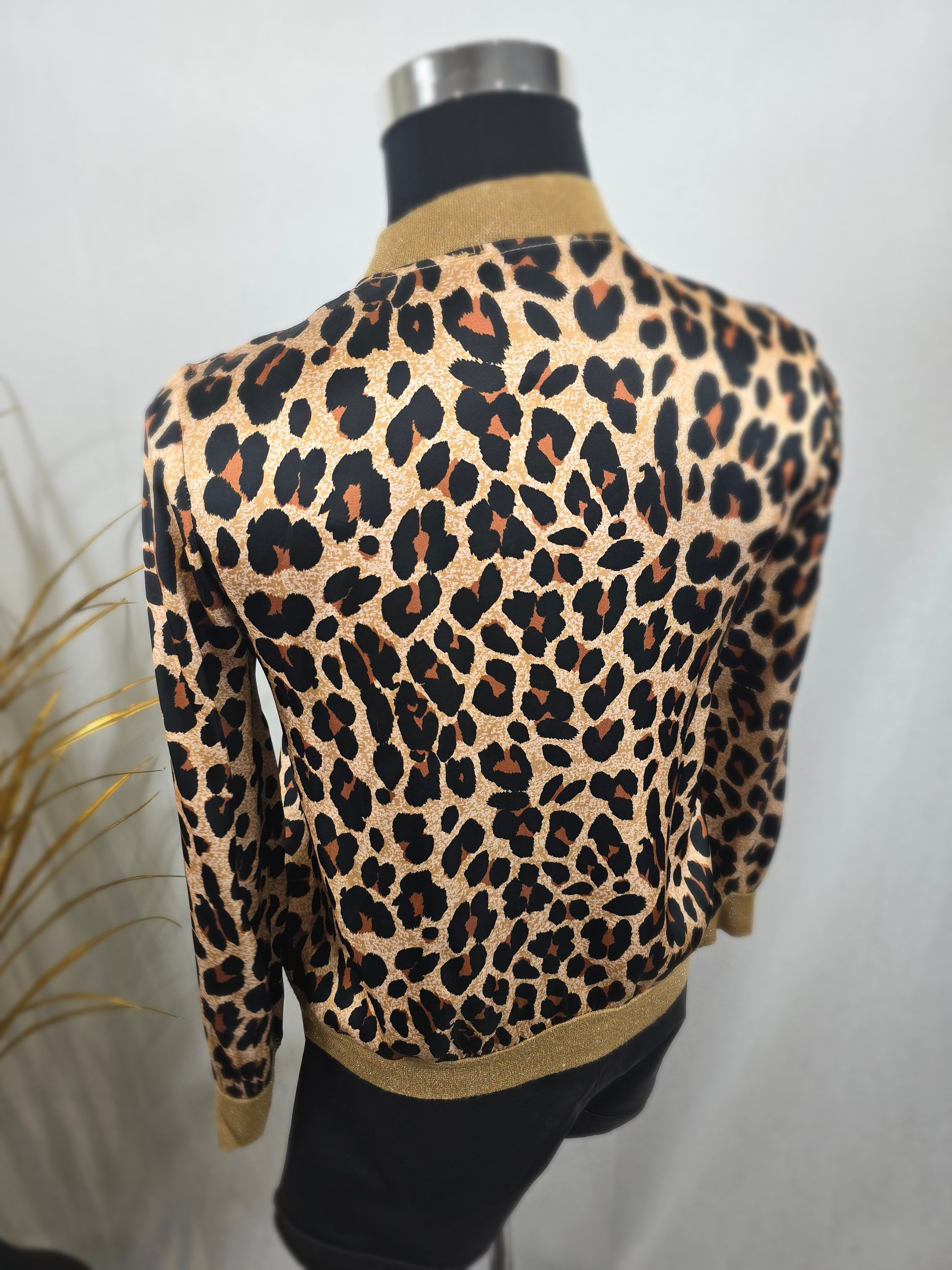 Laissez-vous séduire par la jaquette léopard noire ou or, un mélange parfait d'élégance et d'audace. Confectionnée avec soin en Italie, cette pièce associe 80% viscose et 20% soie, offrant une texture douce, fluide et luxueuse. Son imprimé léopard subtil et sophistiqué en noir apporte une touche sauvage et chic à vos tenues, parfaite pour un look de jour comme de soirée.