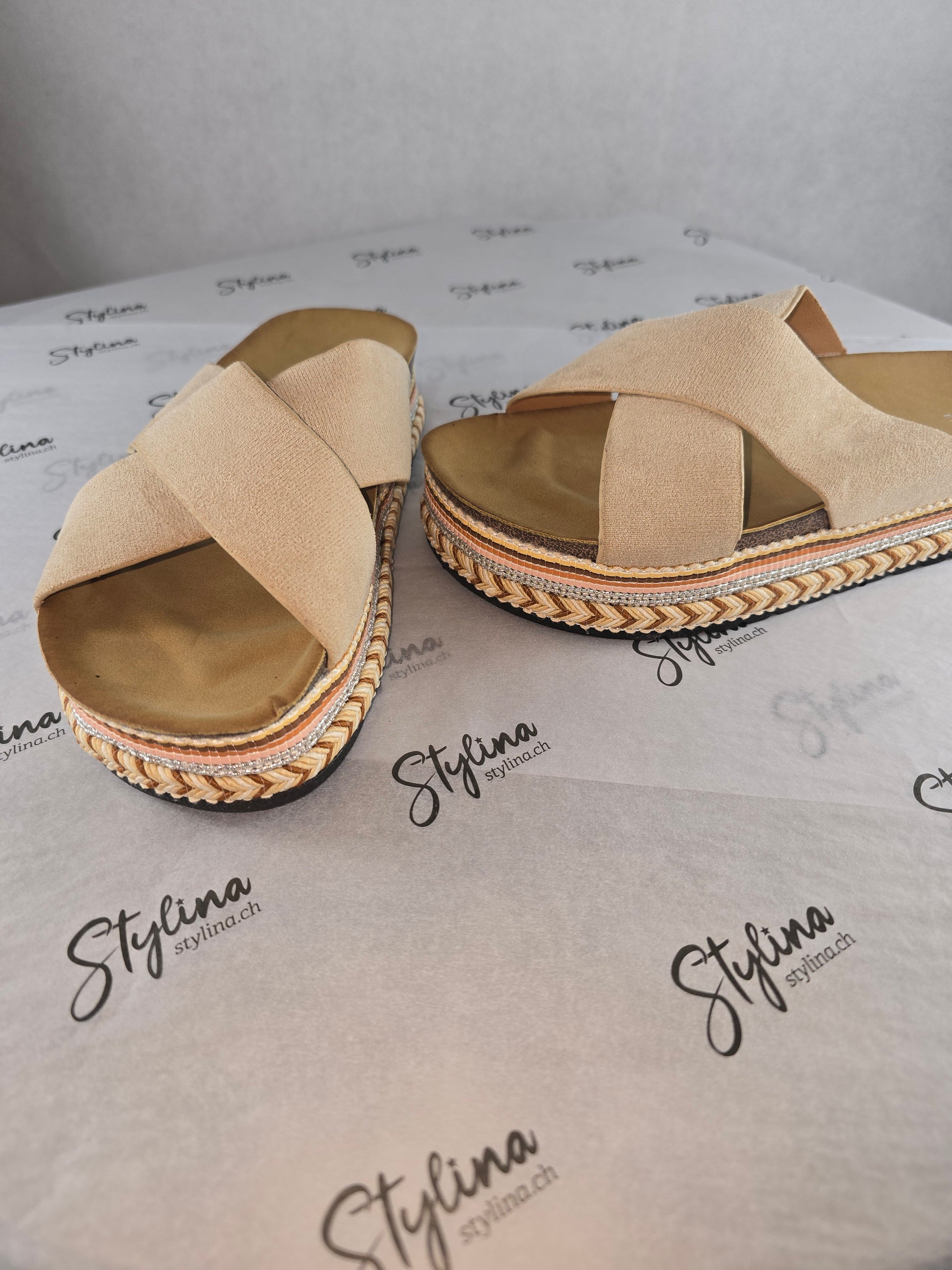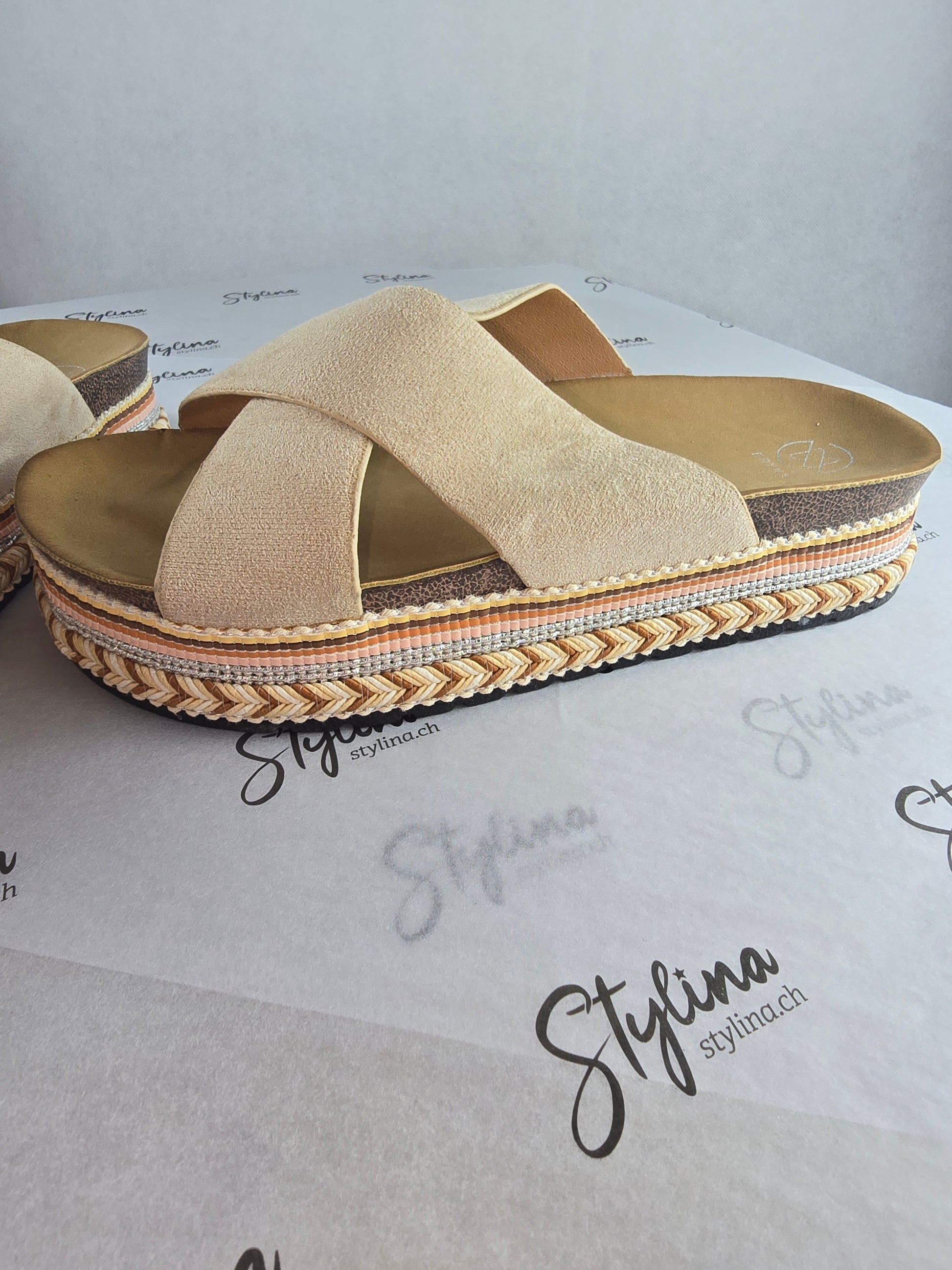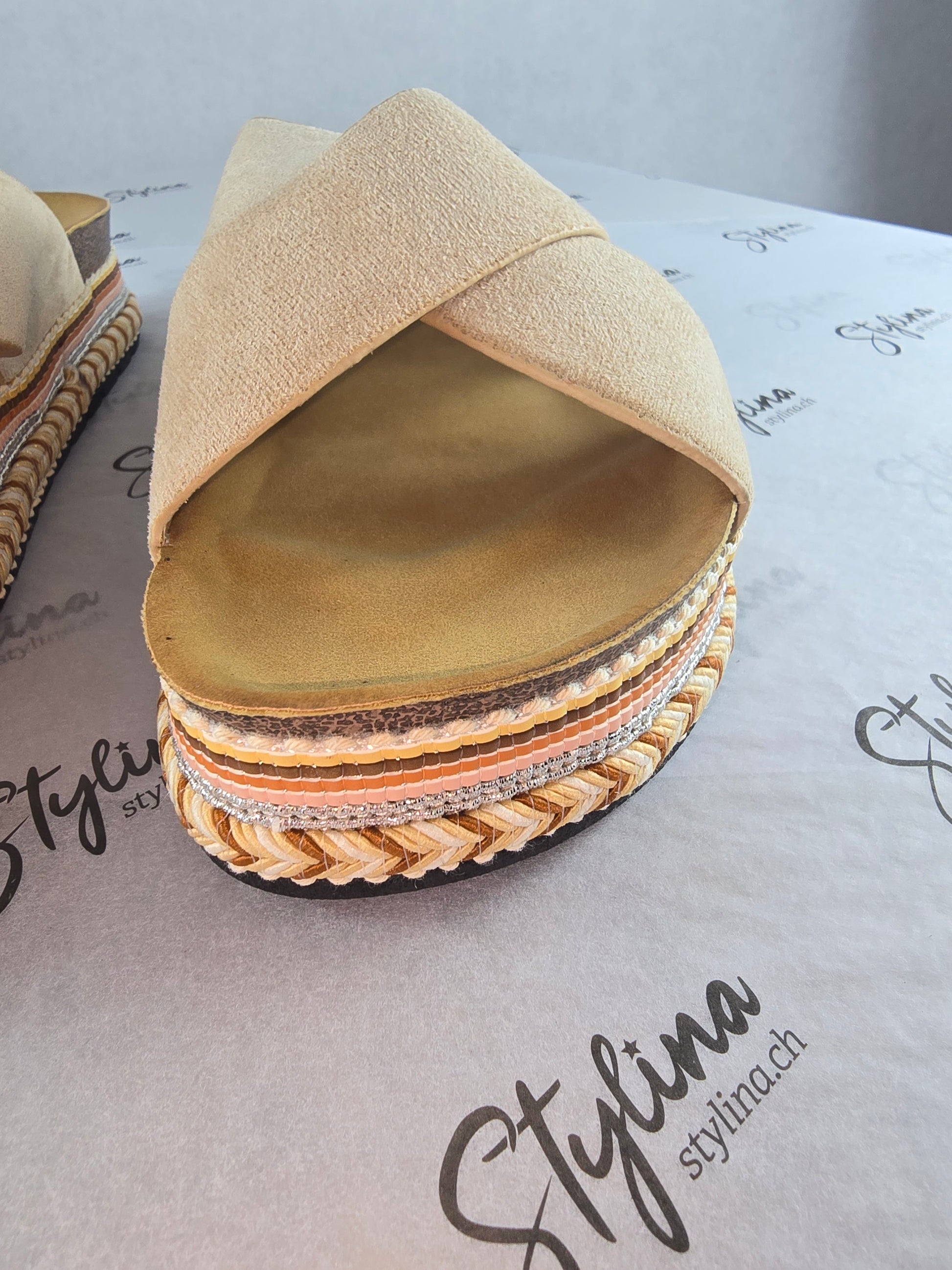 Mules beiges à plateforme – Style bohème chic