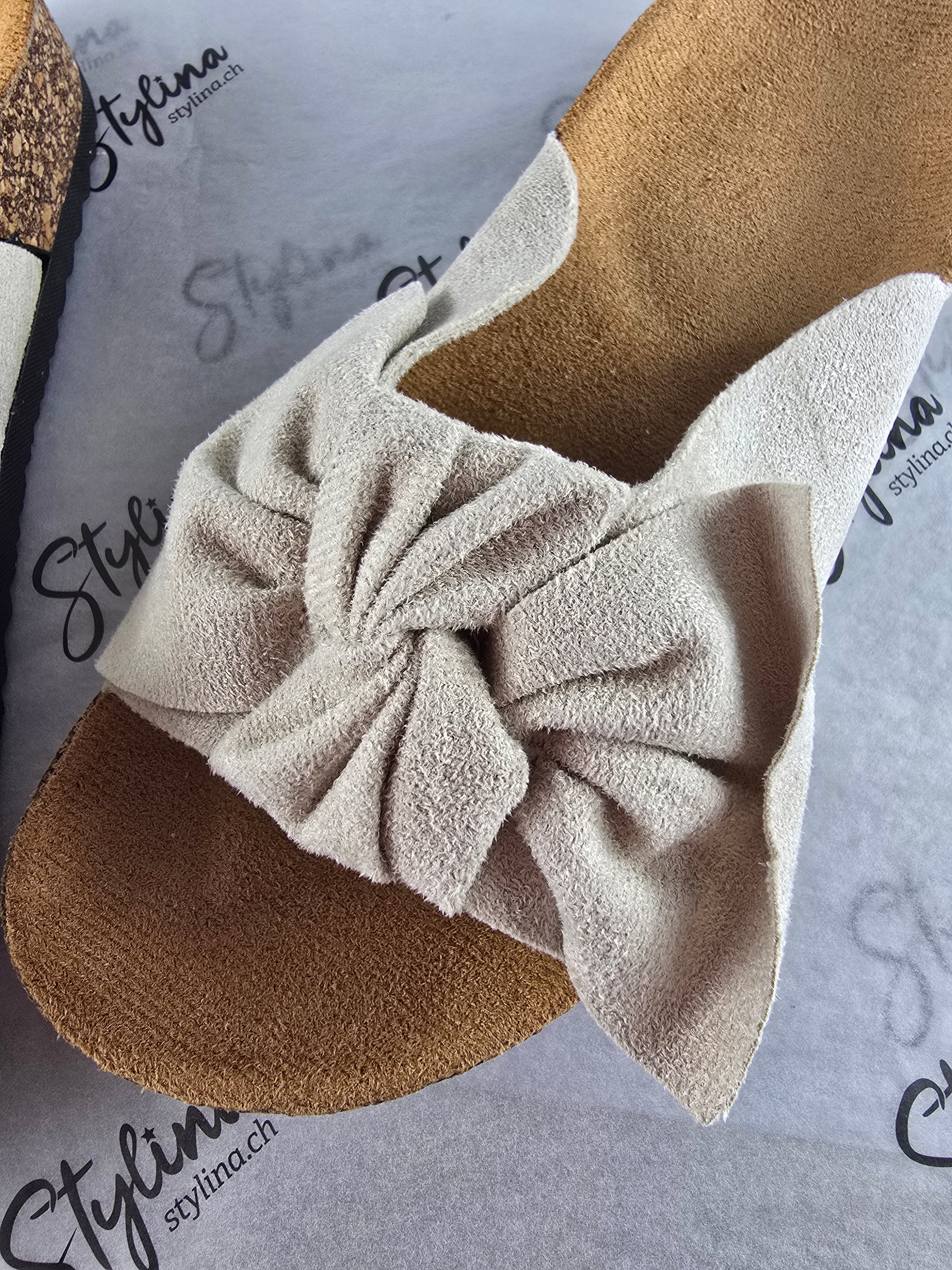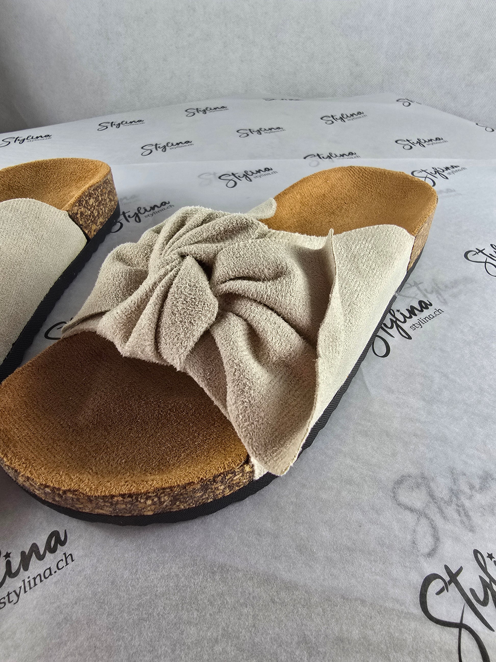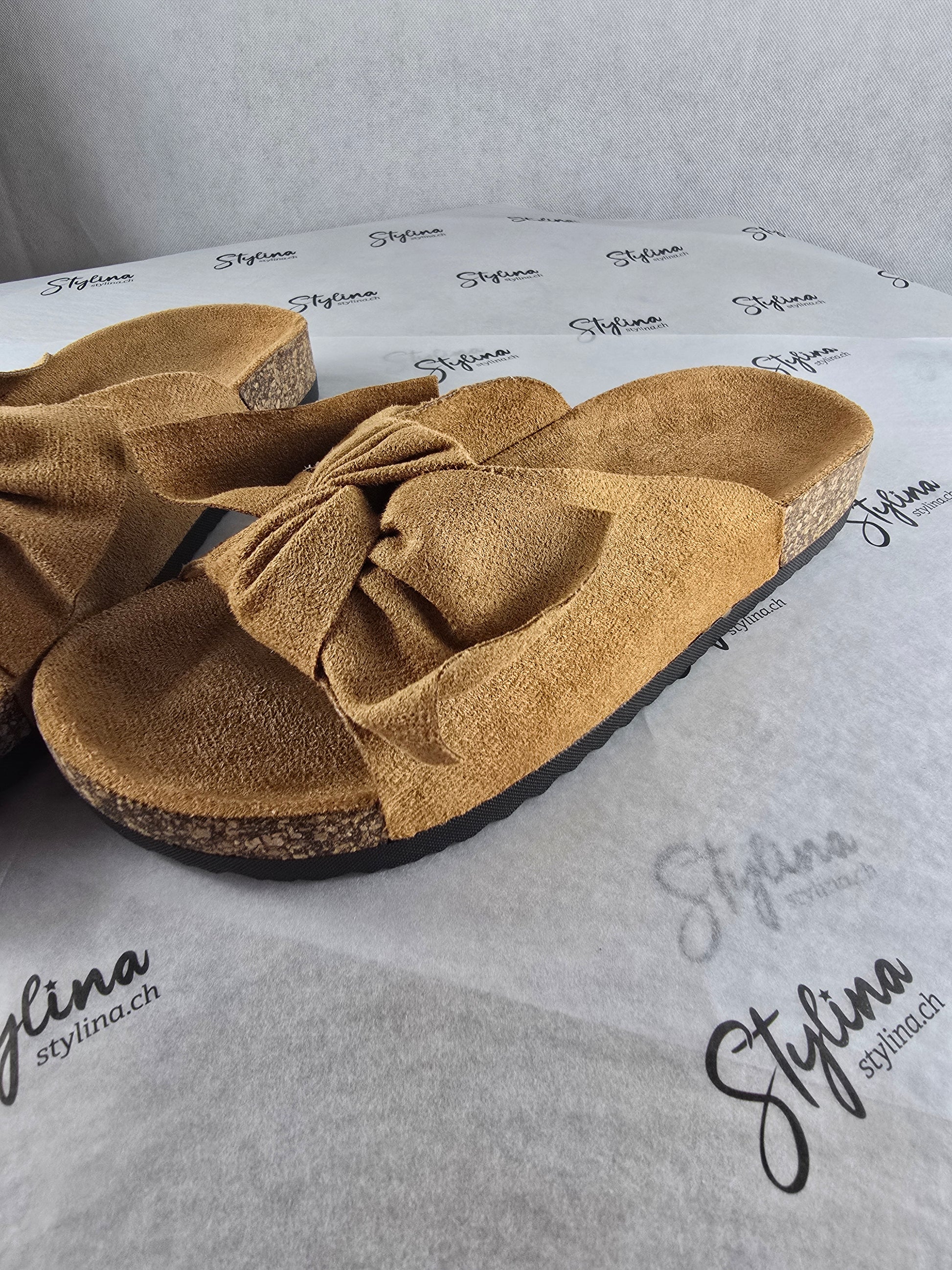 Apportez une touche bohème chic à vos tenues estivales avec ces mules plates ornées d’un grand nœud en suédine. Confortables et stylées, elles disposent d'une semelle ergonomique effet liège, idéale pour un port quotidien.