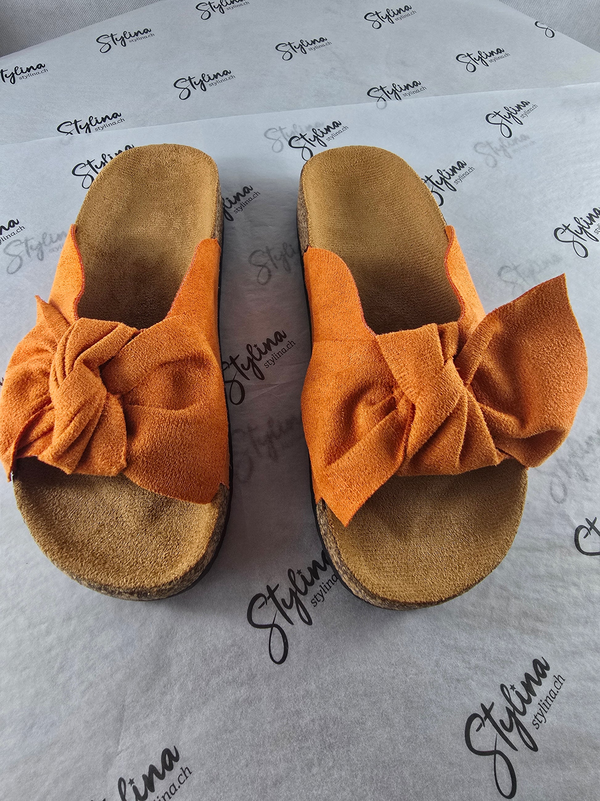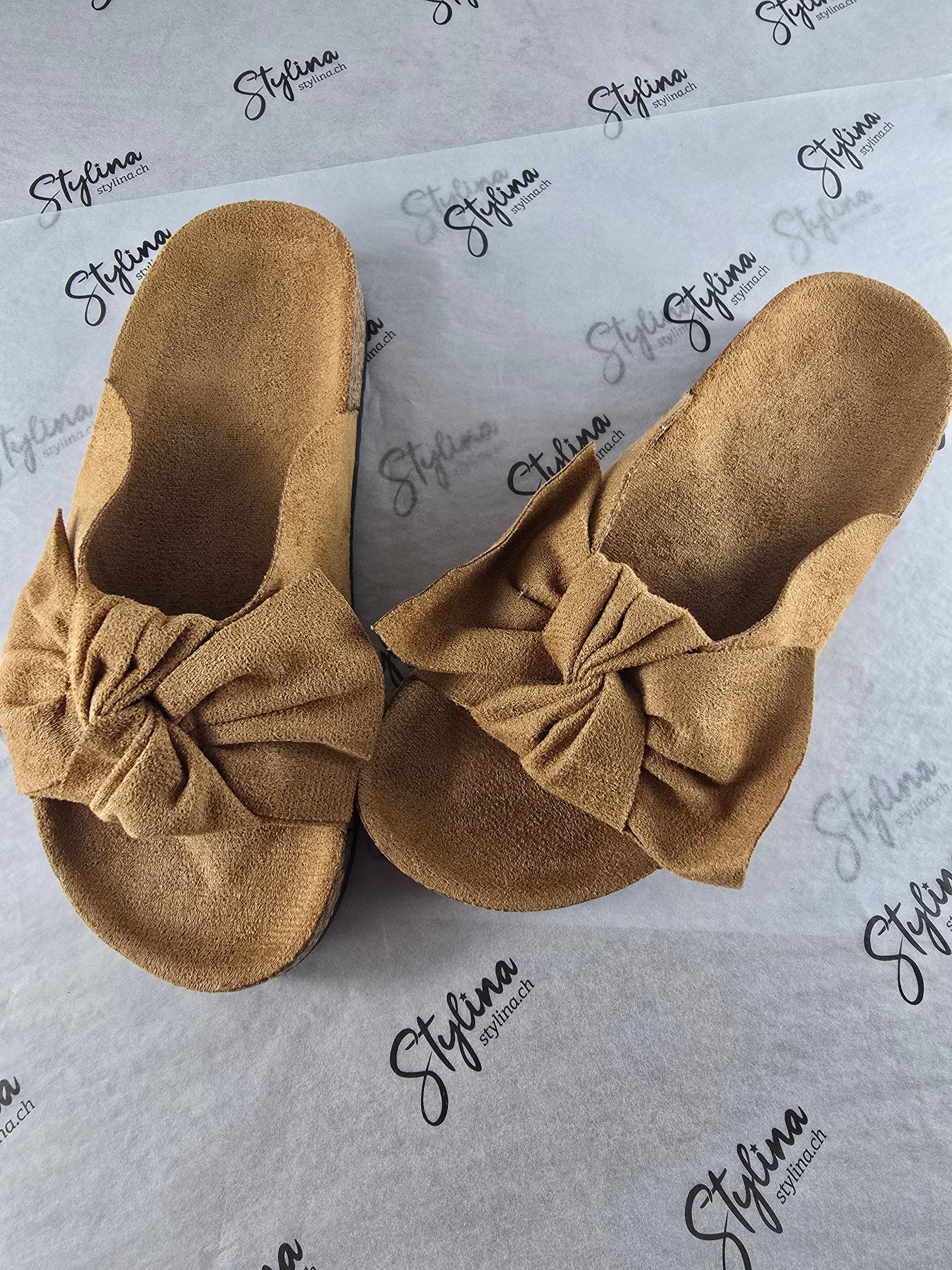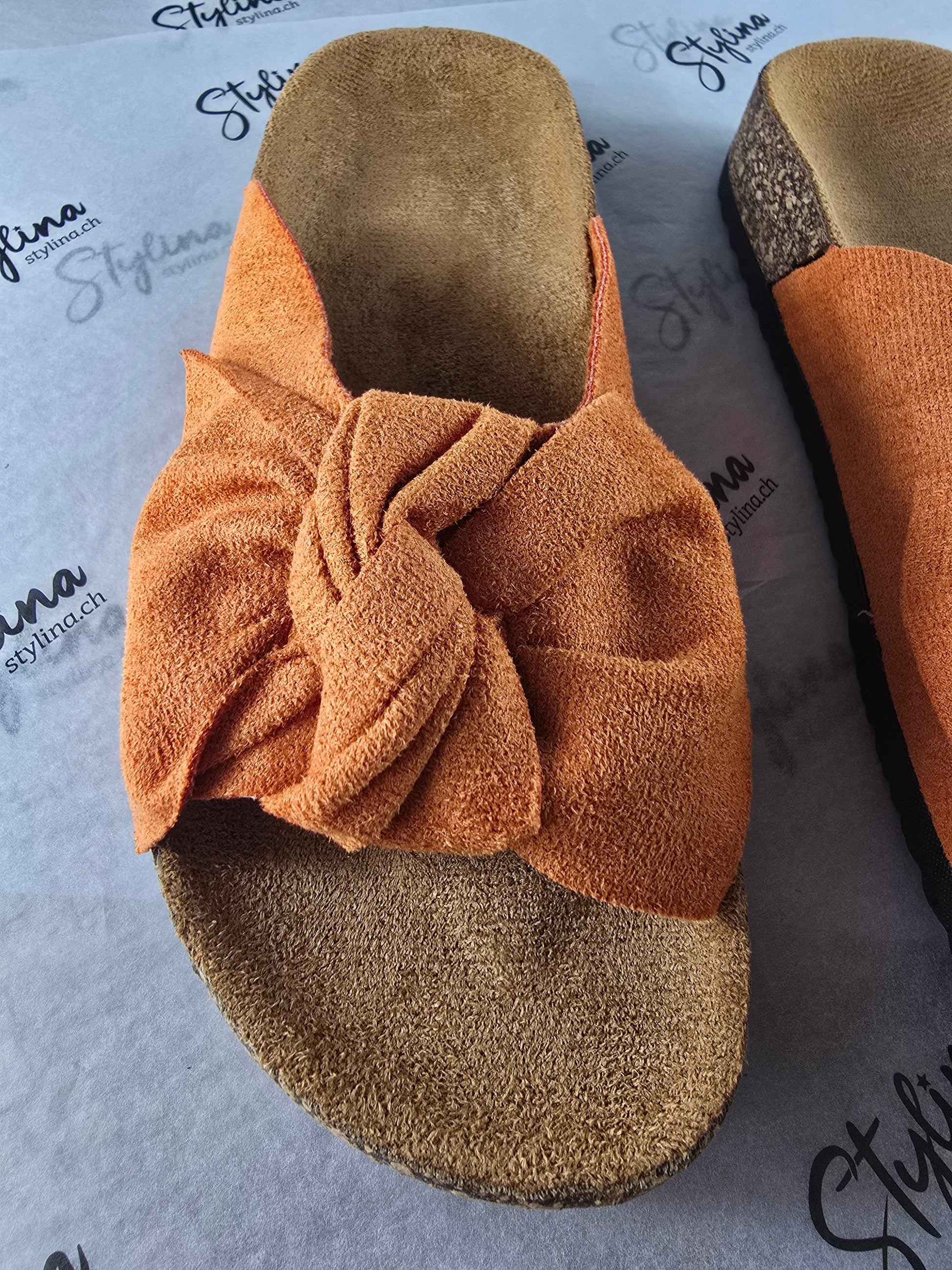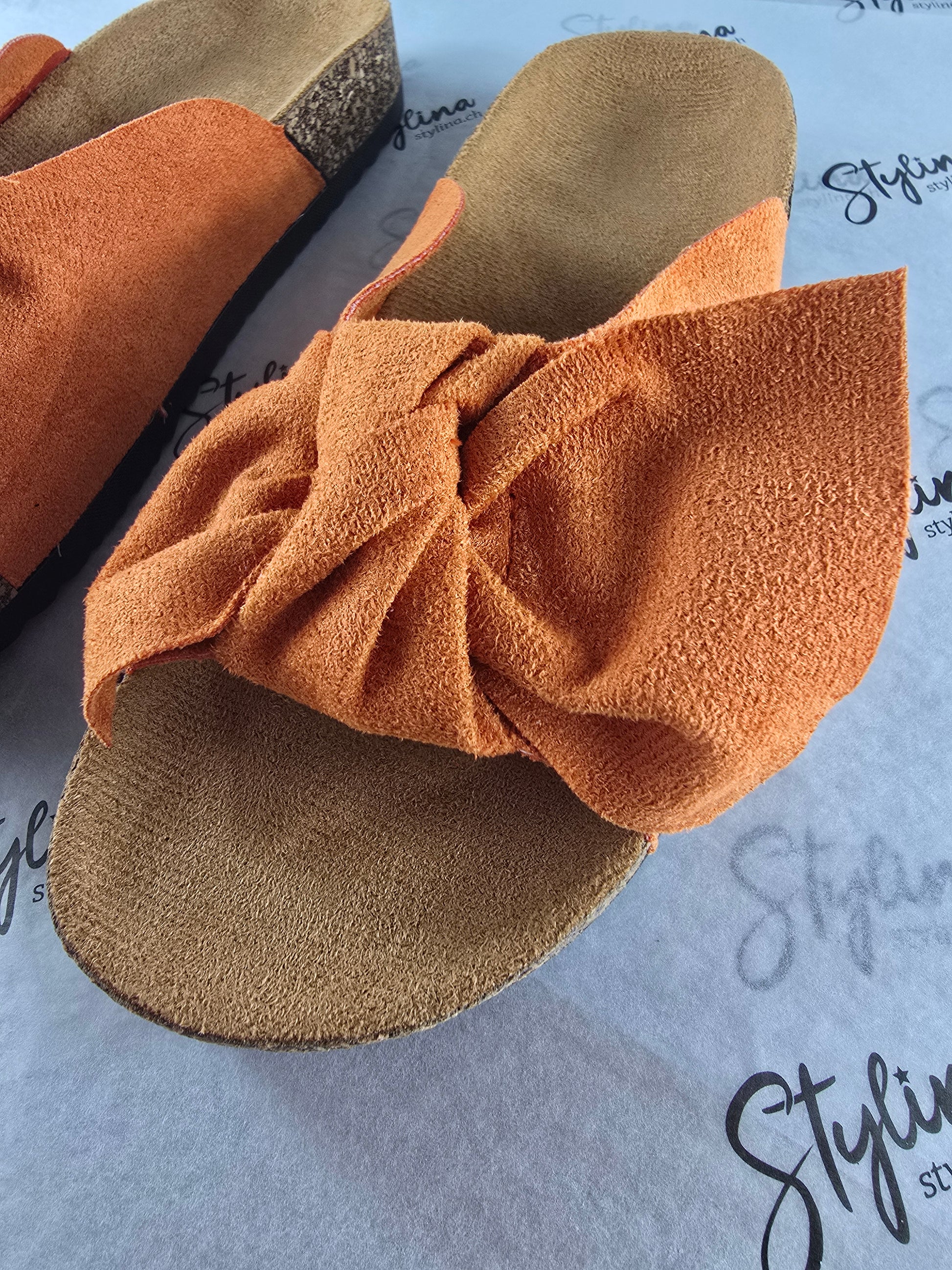 Apportez une touche bohème chic à vos tenues estivales avec ces mules plates ornées d’un grand nœud en suédine. Confortables et stylées, elles disposent d'une semelle ergonomique effet liège, idéale pour un port quotidien.