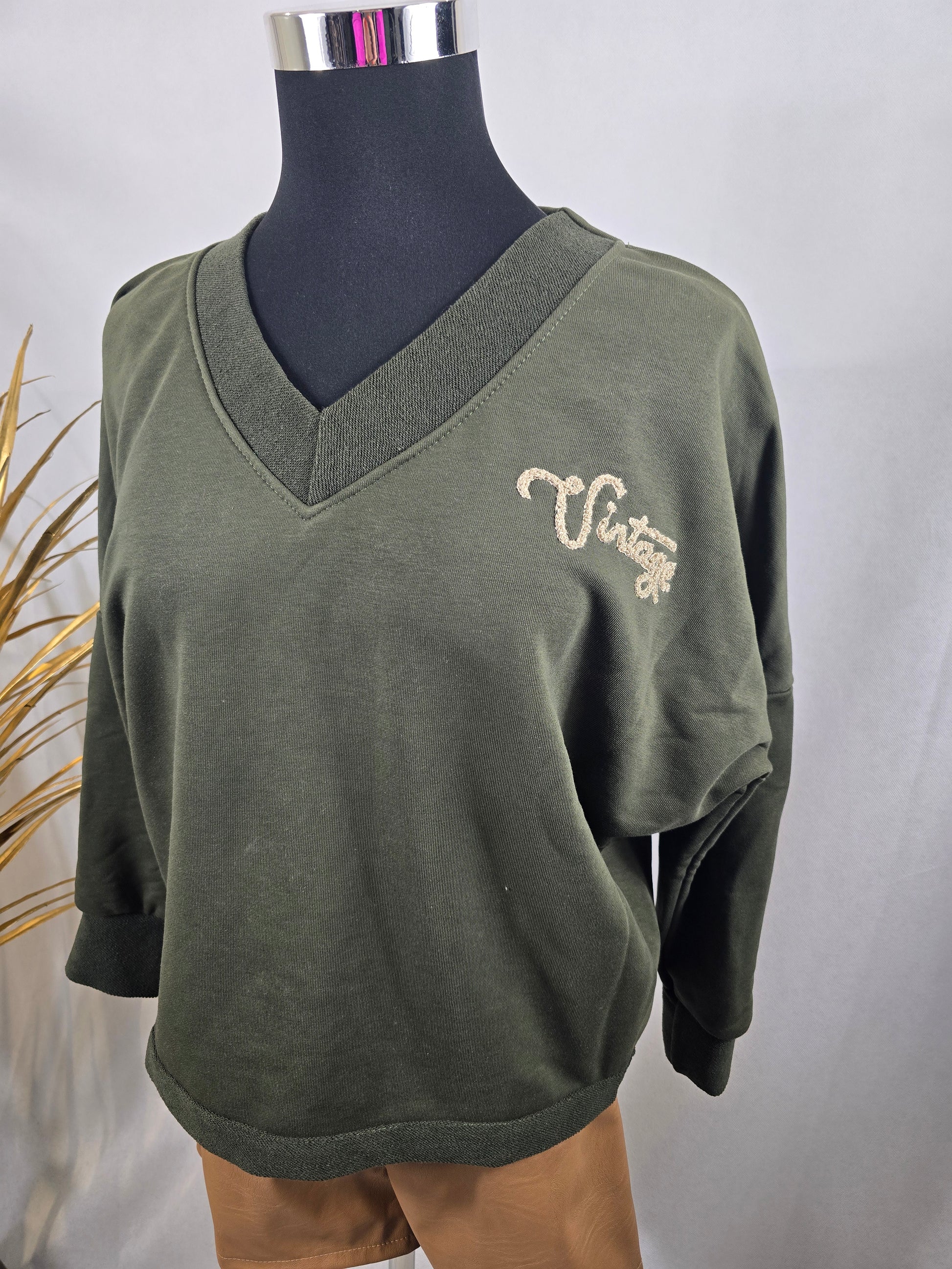 Apportez une touche rétro et stylée à votre garde-robe avec ce pull à inscription "Vintage". Son col en V flatteur et sa coupe confortable en taille unique s’adaptent parfaitement à toutes les silhouettes. Disponible en trois couleurs tendances – vert, rose et rouge – ce pull est l'élément indispensable pour un look à la fois casual et élégant. Idéal pour les journées fraîches ou pour un style décontracté mais chic, il se portera aussi bien avec un jean qu’une jupe. Un incontournable pour les amatrices de mode vintage ! Composition : 80% Coton - 20% Polyester.