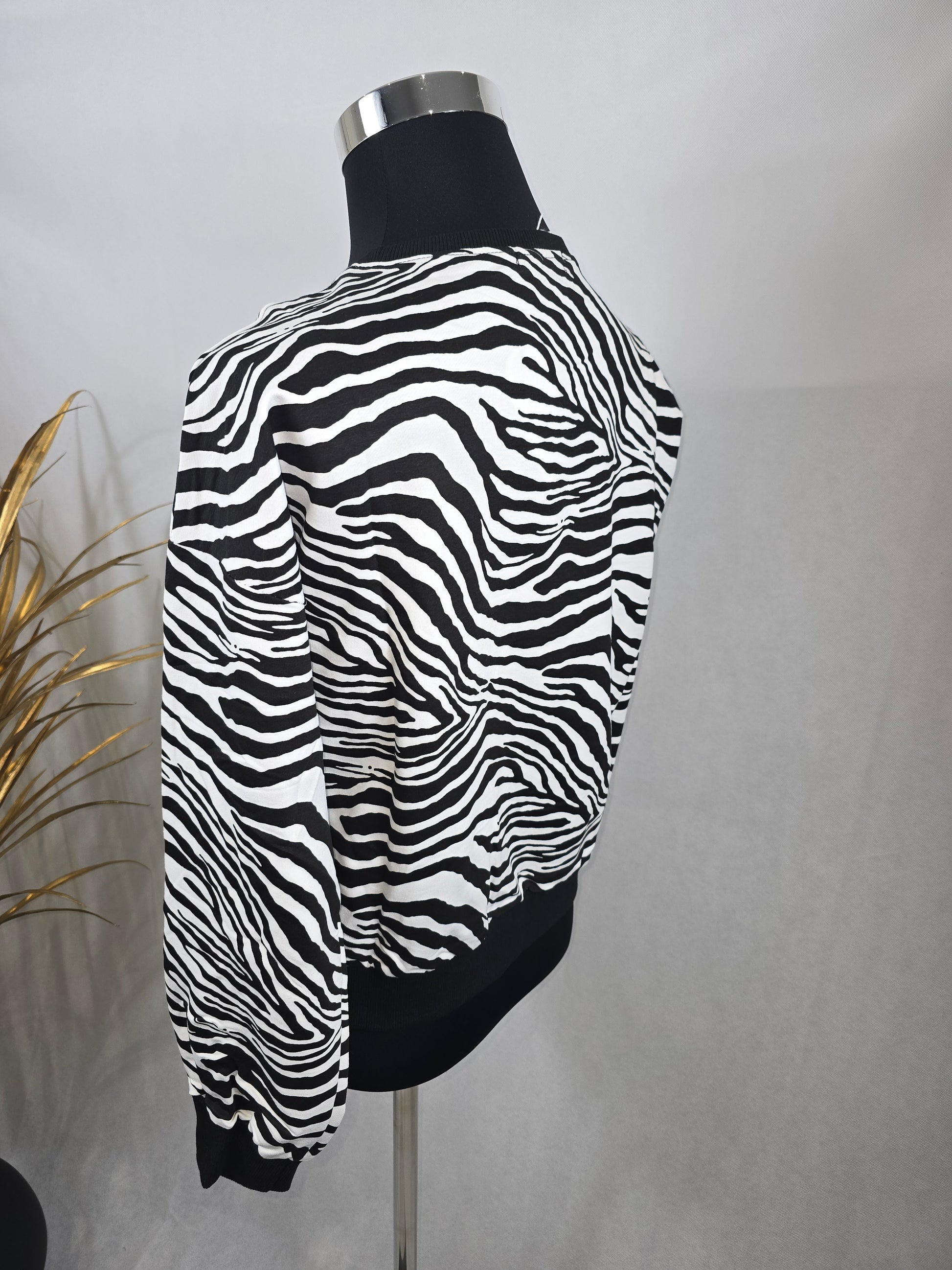 Affichez un style audacieux et moderne avec le pull Zèbre noir-blanc. Son motif zébré unique apporte une touche de caractère à votre garde-robe, tandis que sa composition de 70% coton, 25% polyester et 5% élasthanne assure un confort optimal et une coupe parfaite. Ce pull est parfait pour un look décontracté mais tendance, idéal pour affronter les journées fraîches avec style. Facile à associer avec vos tenues favorites, il est un incontournable de la mode contemporaine.