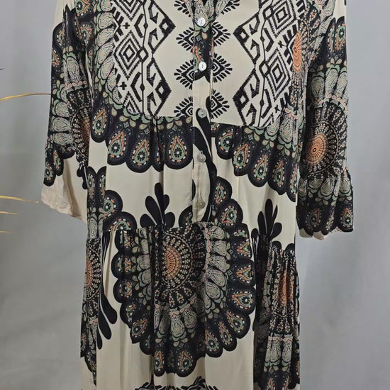 Découvrez l'élégance de la robe VERA, un modèle chic et moderne avec un joli mélange de noir et de vert agrémenté d'un motif subtil. Confectionnée en 100% viscose, elle offre une fluidité et un confort parfaits, tout en restant légère et agréable à porter. Fabriquée en Italie, cette robe incarne le savoir-faire et la qualité, idéale pour une occasion spéciale ou un look quotidien raffiné. Sa coupe flatteuse et son motif tendance en font une pièce incontournable de votre garde-robe.
