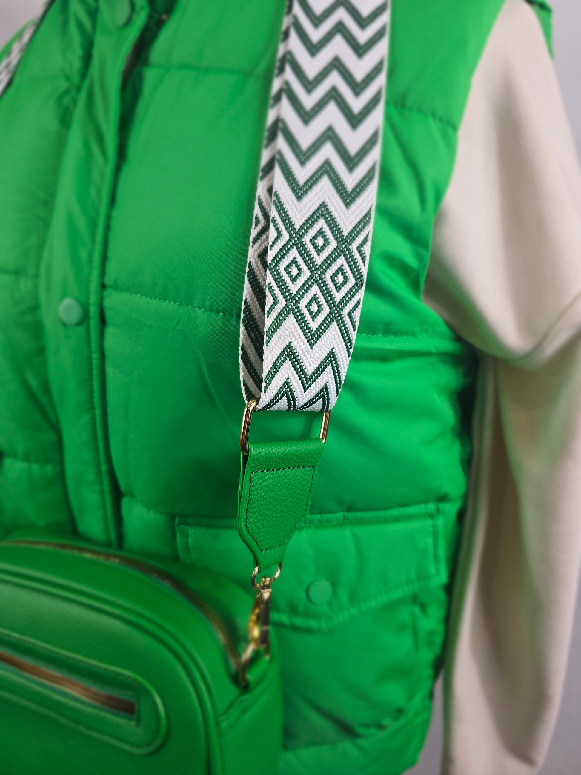 💥 Bandoulière large & imprimée La sangle amovible et réglable en tissu tissé à motifs géométriques (chevrons et losanges) apporte une vraie personnalité à ce sac. Elle assure aussi un confort optimal sur l’épaule.