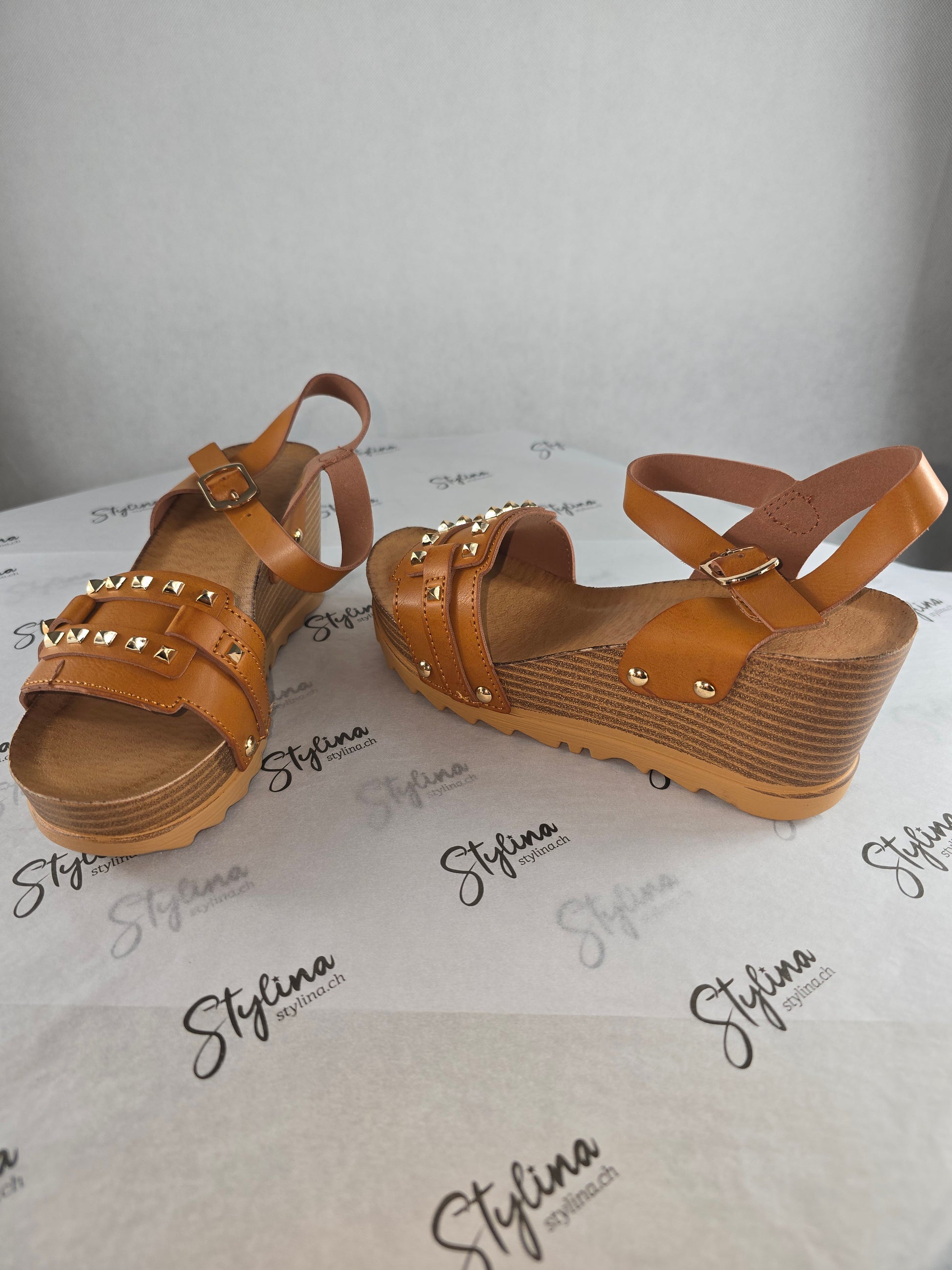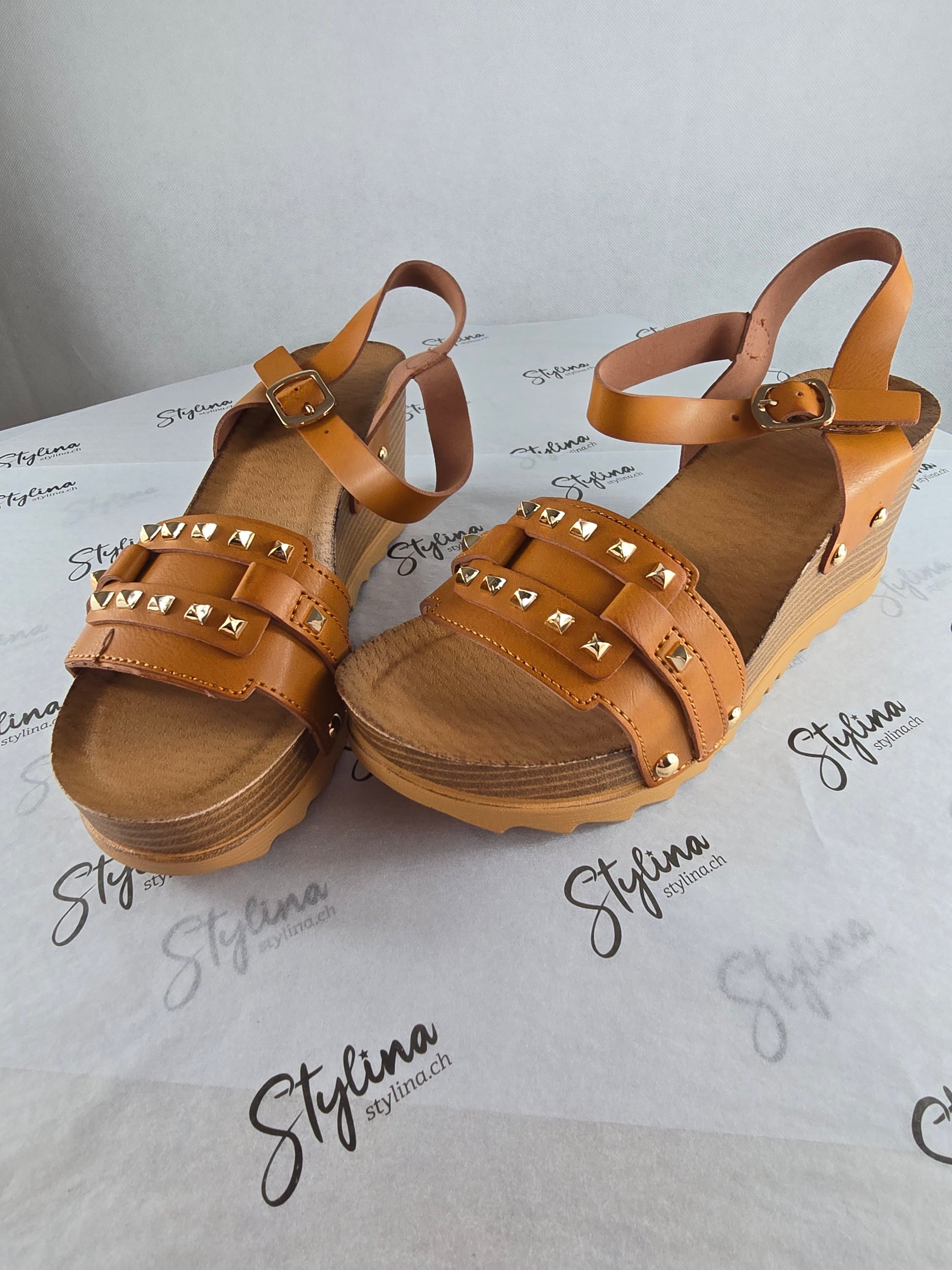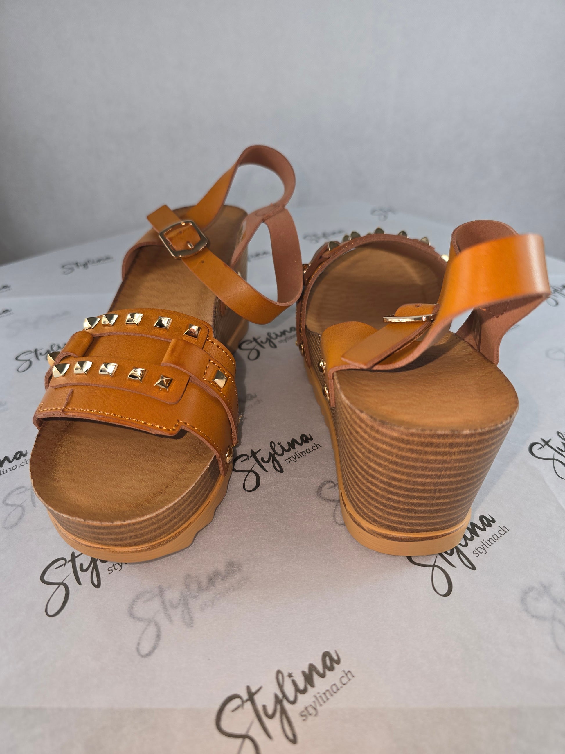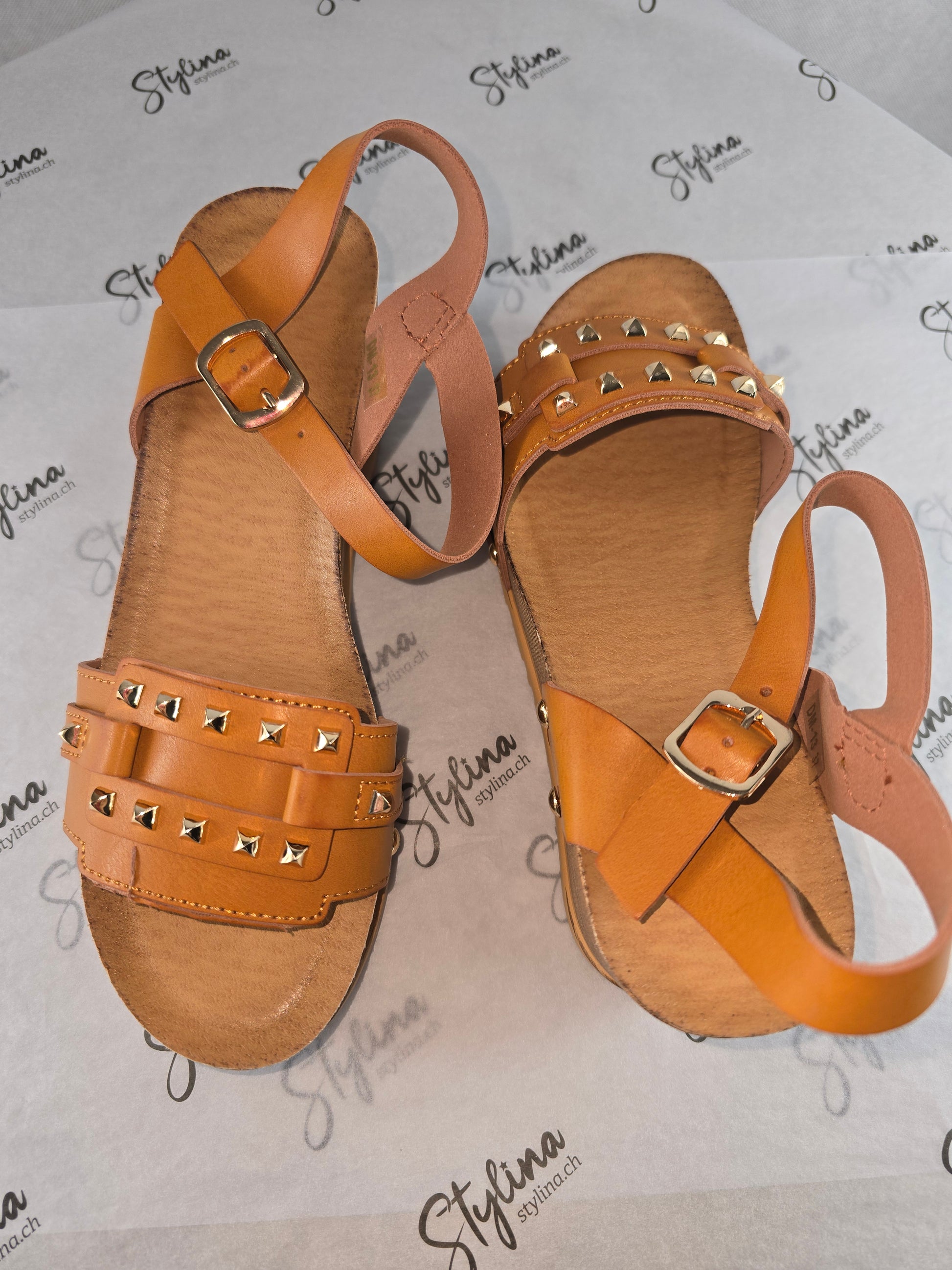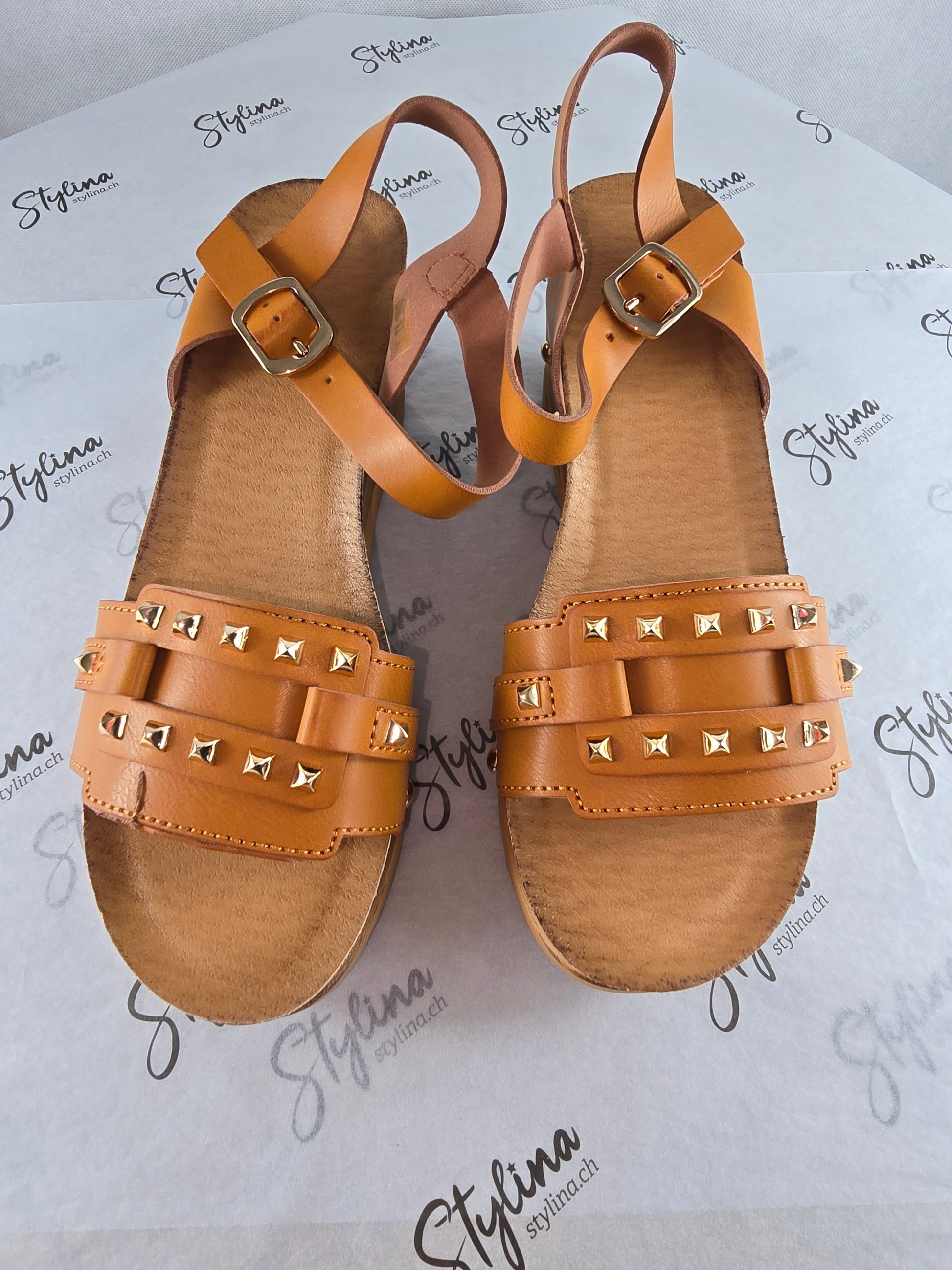 Sandales camel à clous dorés – Style bohème chic