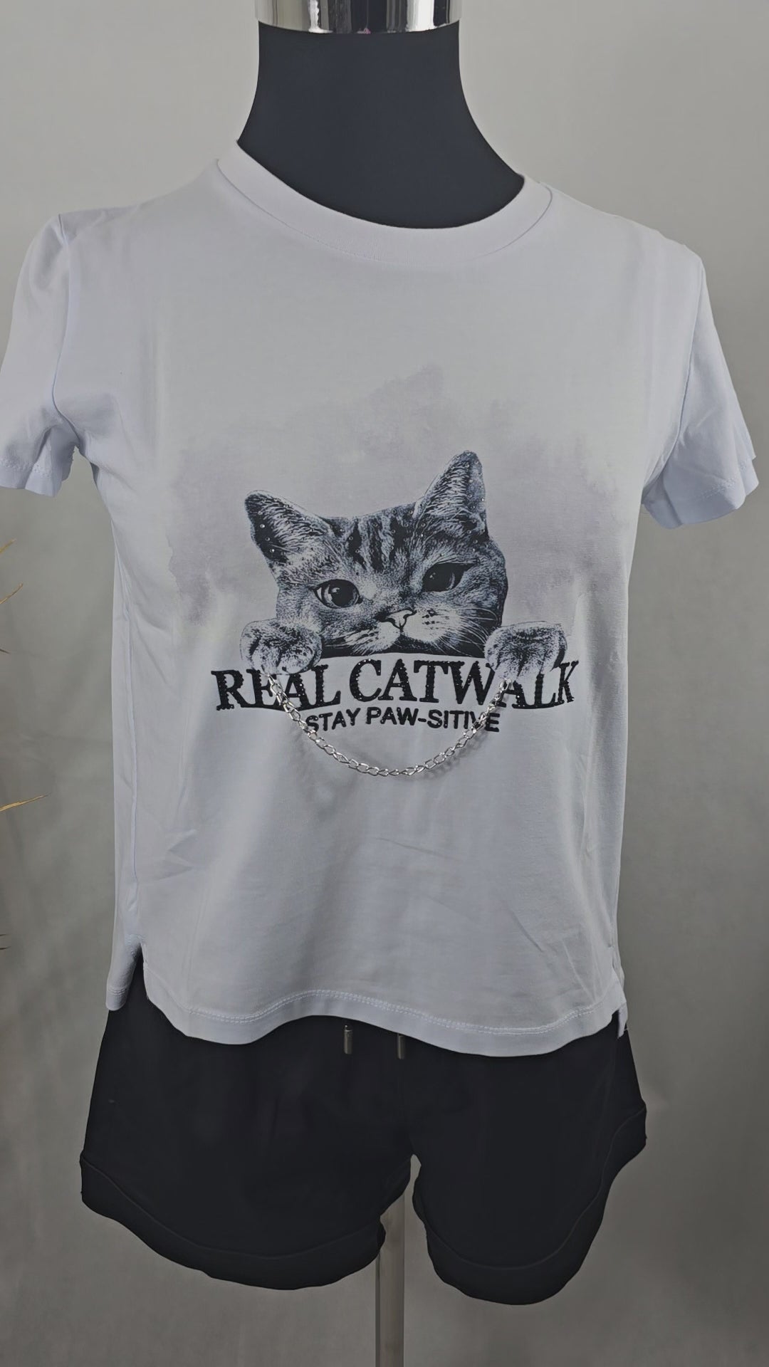 Ajoutez une touche de glamour à votre style avec ce t-shirt orné d'un dessin de chat et de strass. Confectionné dans un mélange de 75% viscose, 20% polyester et 5% élasthanne, il offre à la fois confort, souplesse et légèreté. Le design unique de ce t-shirt met en valeur un chat décoré de strass scintillants, apportant une note d’élégance et de fun à votre tenue. Idéal pour un look décontracté mais original, il se porte aussi bien au quotidien qu’en sortie. Fabriqué en Turquie, ce t-shirt combine qualité et style, pour une allure à la fois chic et tendance.