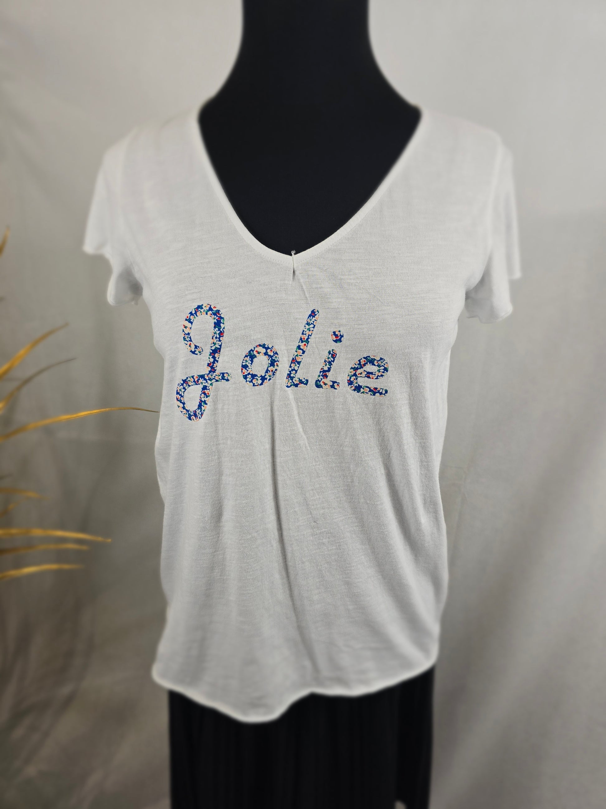 Misez sur la simplicité et l’élégance avec ce t-shirt blanc "Jolie", fabriqué en 100% coton pour une sensation de douceur et de confort tout au long de la journée. Avec son design minimaliste et son inscription "Jolie", il s’adapte parfaitement à tous les styles. Ce t-shirt est idéal pour un look casual, tout en restant chic et raffiné. Parfait pour toutes les occasions, il ajoutera une touche moderne et intemporelle à votre garde-robe.